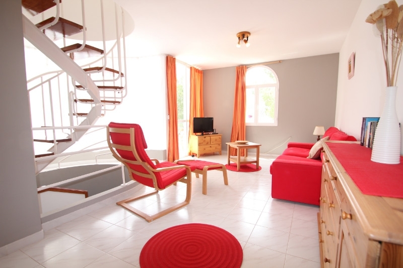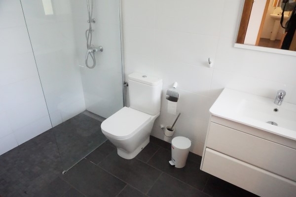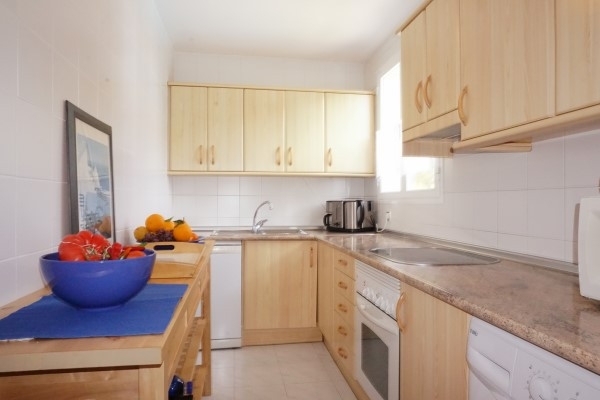 Das schöne Reihenhaus mit Penthaus Charakter liegt in einer ruhigen Urbanisation in Sol de Mallorca mit Gemeinschaftspool. Das Haus hat eine Wohn/Nutzfläche von 159 m² und teilt sich wie folgt auf: Im unteren Bereich gibt es eine grossszügige Garage mit viel Abstellfläche. Der Eingangsbereich befindet sich in der 2. Etage. Dort gelangt man in den Licht durchfluteten Wohnbereich mit Blick ins grüne und grossen Fensterfronnten, einem Gäste, einer schönen Küche und Ausgang vom Wohnbereich auf die Süd Terrasse.Die 3 Schlafzimmer und 2 Bäder (eins En Suite) befinden sich in der 1. Etage. Die Bäder sind hell und feundlich ausgestattet.