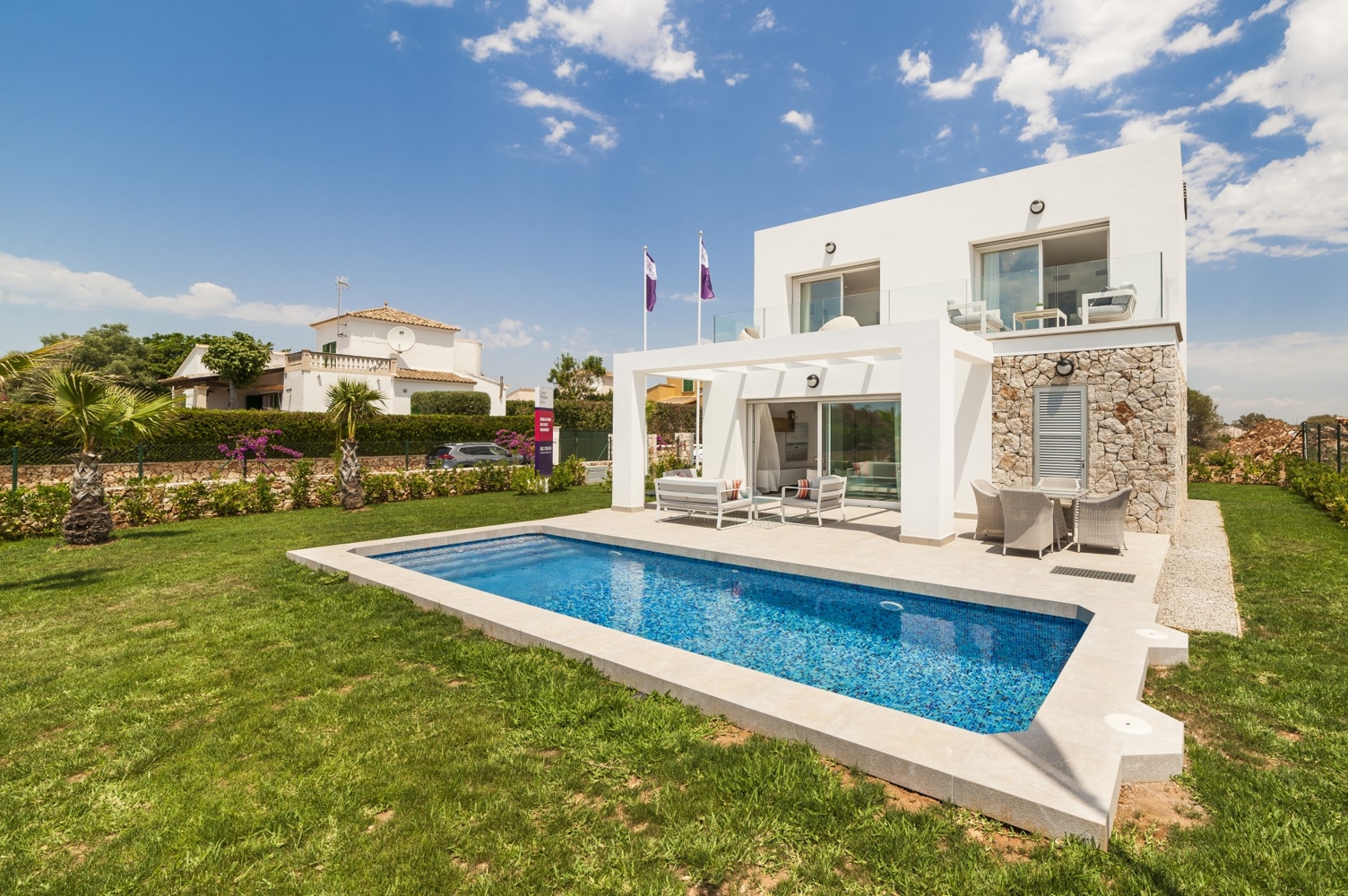 Diese Neubau Villen im zeitgenössischen und minimalistischen Stil wurden mit viel Liebe und Sorgfalt geplant, um geräumige, helle Räume zu bieten und den besten Raumkomfort für Sie zu nutzen. Sie wurden alle mit 3 Doppelschlafzimmer und 3 Badezimmer, Küche und Waschküche, Wohn- und Esszimmer mit Vorinstallation eines Kamins, großen Terrassen und Garten ausgestattet. Das Grundstück umfasst auch einen privaten Parkplatz und einen Abstellraum.Als Käufer dieser Immobilie haben Sie die Möglichkeit Ihr neues Zuhause mit zu gestalten. Treffen Sie eine Auswahl an optionalen Extras z.B. Pool, Fußbodenheizung, Klimaanlage, Garage, Kamin, usw.