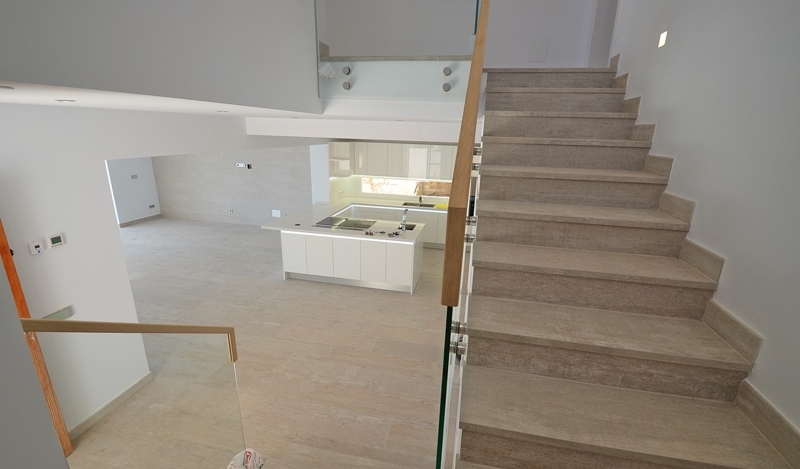 Aufgeteilt in 4 Schlafzimmer mit jeweils Bad en Suite + 1 weiteres großes Bad, Wohnzimmer mit grossen Fensterfronten und traumhaften Meerblick, moderne und exklusive Küche mit vielen technischen Details und Weinkühlschrank.