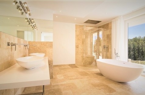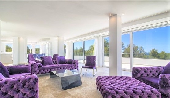 Moderne, wunderschöne, kernsanierte Villa mit Meerblick in Santa Ponsa. Diese fantastische, südwestlich ausgerichtete Meerblickvilla wurde 2015/2016 komplett saniert und mit hochwertigen und edlen Materialien ausgestattet.Zum Haupteingangsbereich der Villa, welcher sich in der ersten Etage befindet, gelangt man über eine Aussentreppe. Der große Wohn-Essbereich mit Kamin und offener, voll ausgestatteter Einbauküche und anschließendem Hauswirtschaftsraum bietet viel Platz zum Wohlfühlen und für Gäste. Von diesen Räumlichkeiten aus hat man Zugang zu den sonnigen und großzügigen Terrassenflächen und genießt einen fantastischen Meerblick.