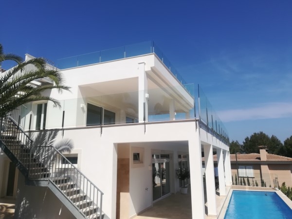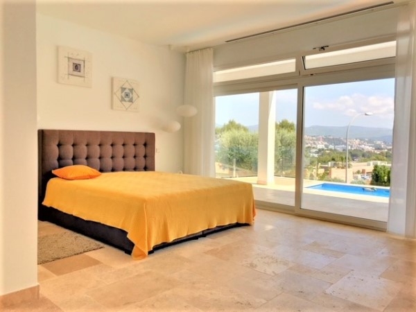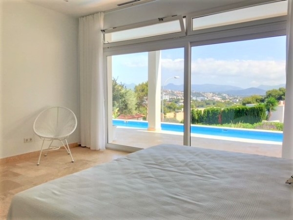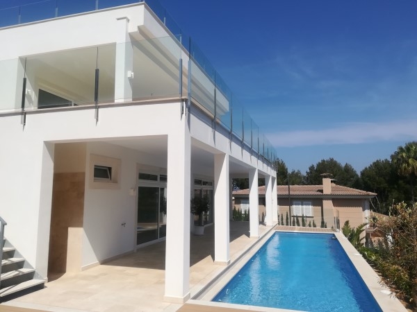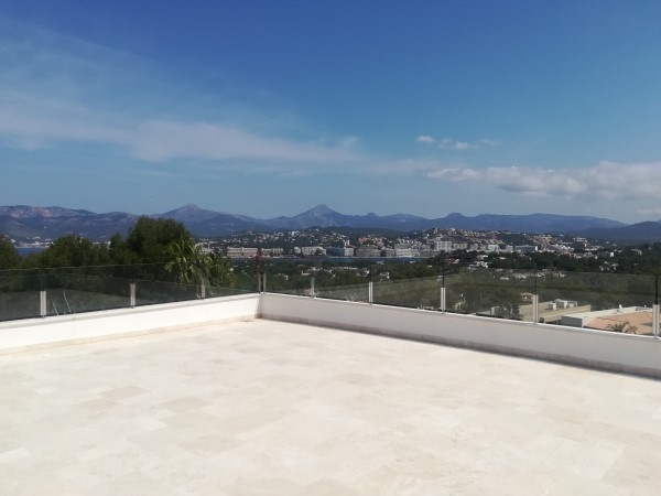 Diese moderne und helle Villa wurde 2017 komplett kernsaniert und mit hochwertigen Materialien und Markengeräten ausgestattet. Die Villa in Hanglage befindet sich im begehrten Villenviertel von Santa Ponsa. Im Erdgeschoss gelangt man durch den hellen Eingangsbereich in drei große Schlafzimmer mit jeweils Bad en suite und Zugang zu den großenzügigen Terrassenflächen mit angrenzendem Pool.Eine Treppe führt in die erste Etage, wo sich der offene und helle Wohn-Essbereich mit integrierter, offener Einbauküche befindet. Auch hier gelangt man über die weitläufigen Panoramafenster zu einer ca. 50 m² großen Terrasse, die einen fantastischen Blick auf das umliegende Panorama und das Meer bietet.