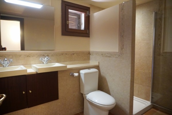 Der Wohnbereich ist in der Höhe versetzt, in Wohnbereich und Essbereich aufgeteilt. Die wundervolle Terrrasse umschliesst 2 Seiten des Hauses und bietet auch im Hochsommer einen schönen Schattenplatz mit traumhaften Blick über den Golfplatz Son Vida, Palma und zum Meer.