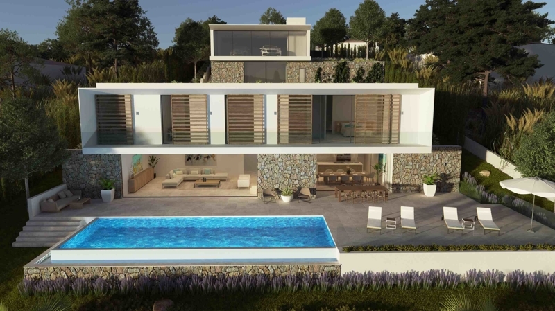 Grundstück mit Lizenz und Plan für eine Villa mit einer bebauten Fläche von 786 m² und traumhaften Meerblick.Pläne für den Bau sowie Kosten erfragen Sie bitte direkt bei uns. Auf dem Titelbild sehen Sie das geplante Projekt