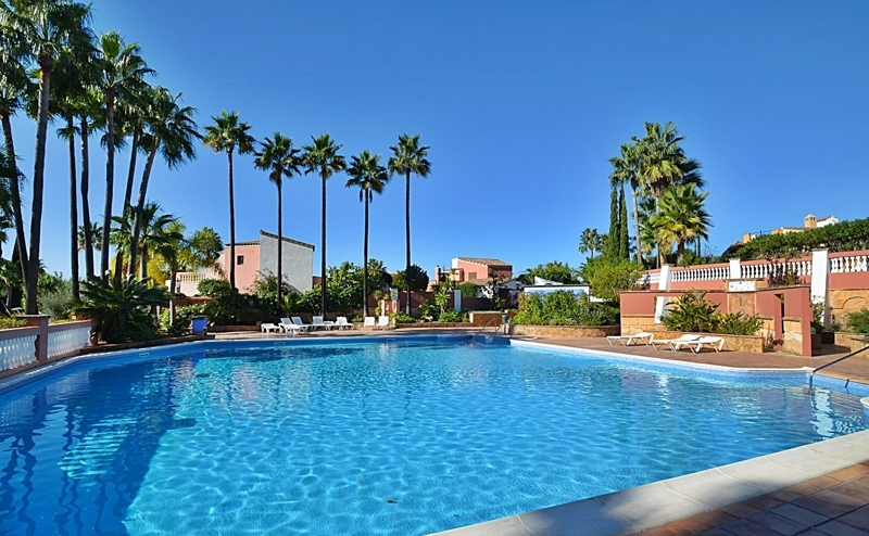 Fussbodenheizung in den Bädern, Kamin, Einzel-Garage und Stellplatz, Klima w/k, privater Pool, SAT TV, direkte Lage am Golf Santa Ponsa 1, grosser Gemeinschaftspool