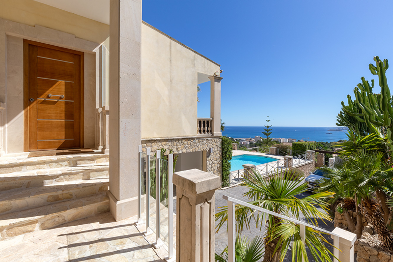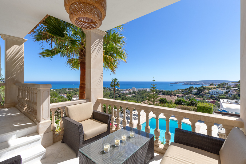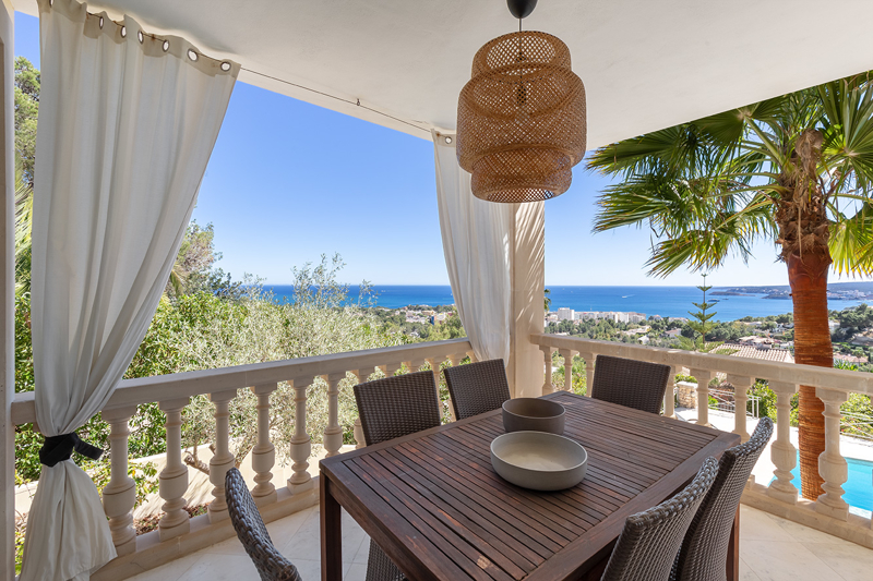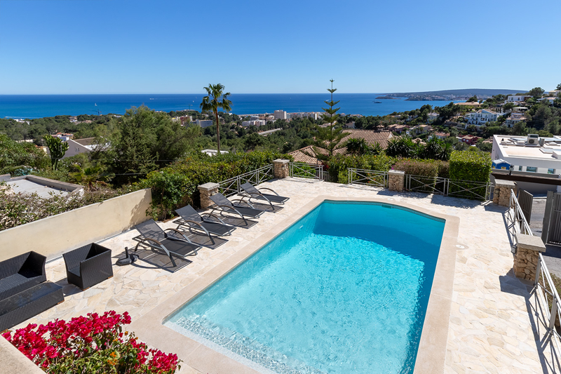 Die Villa verfügt über einen wunderschönen Poolbereich mit herrlichem Blick über die Bucht von Portals und einem mediterran angelegtem Garten.