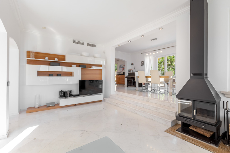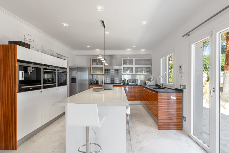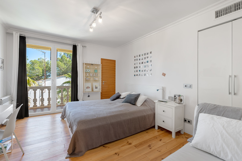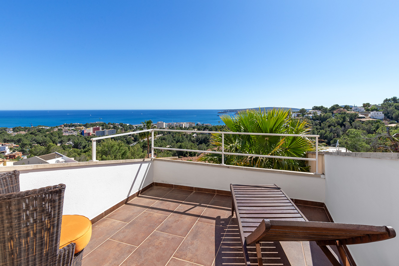 Diese Villa befindet sich in Costa den Blanes mit einem fantastischem Panoramablick über die Bucht von Portals und auf die Süd-West Küste. Die Wohnfläche verteilt sich auf zwei Ebenen. Im Erdgeschoss befindet sich ein sehr sonniges , offenes Wohn-und Esszimmer, eine moderne Designerküche, mit hochwertigend Siemens Elektrogeräten, ein Hauswirtschaftsraum und eine Speisekammer sowie ein Büro oder Schlafzimmer inklusive Badezimmer. Im ersten Stock befinden sich 3 Schlafzimmer, einem Badezimmer und Ankleidezimmer inklusive einer Meerblickterrasse.