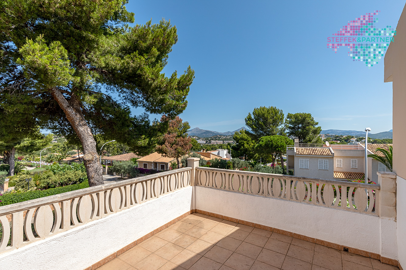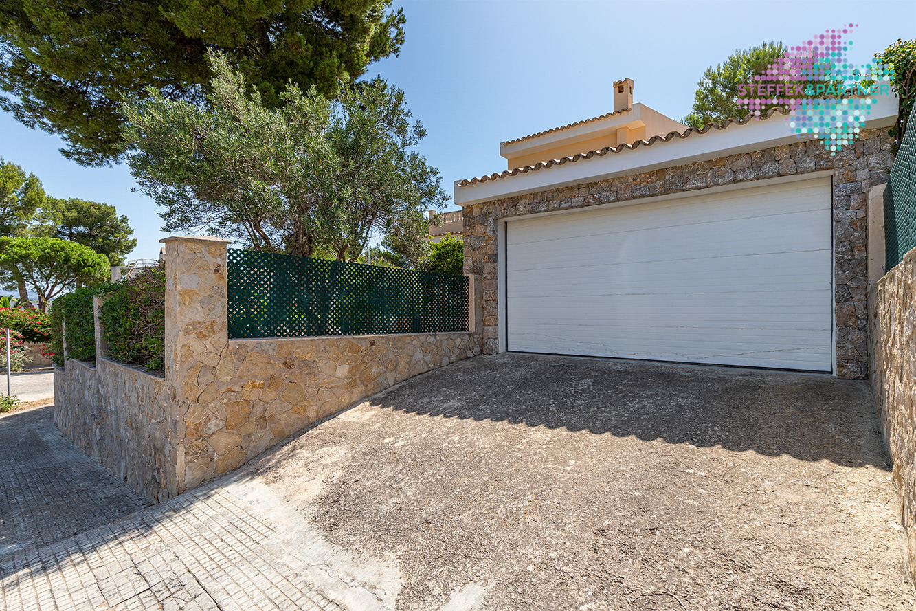 Diese gepflegte Villa liegt in begehrter Villenlage von Nova Santa Ponsa, auf de Ensaimada, in der Gemeinde Calvia im Südwesten der Insel Mallorca.Diese Mallorca Immobilie befindet sich auf einem ca. 1089 m² großem Grundstück und verfügt über eine Wohnfläche von ca. 275 m². Die Villa wurde auf 2 Wohnebenen erbaut und bietet im Untergeschoss einen offenen Wohn/Essbereich und offener Küche, 1Gäste-WC, 1 Schlafzimmer und 1 Badezimmer. Die 1.Etage teilt sich auf in 3 Schlafzimmer, 2 Bäder, ein Ankleidezimmer sowie 2 Terrassen mit schönem Panoramablick über die Landschaft und teilweisem Blick auf die Bucht von Santa Ponca.