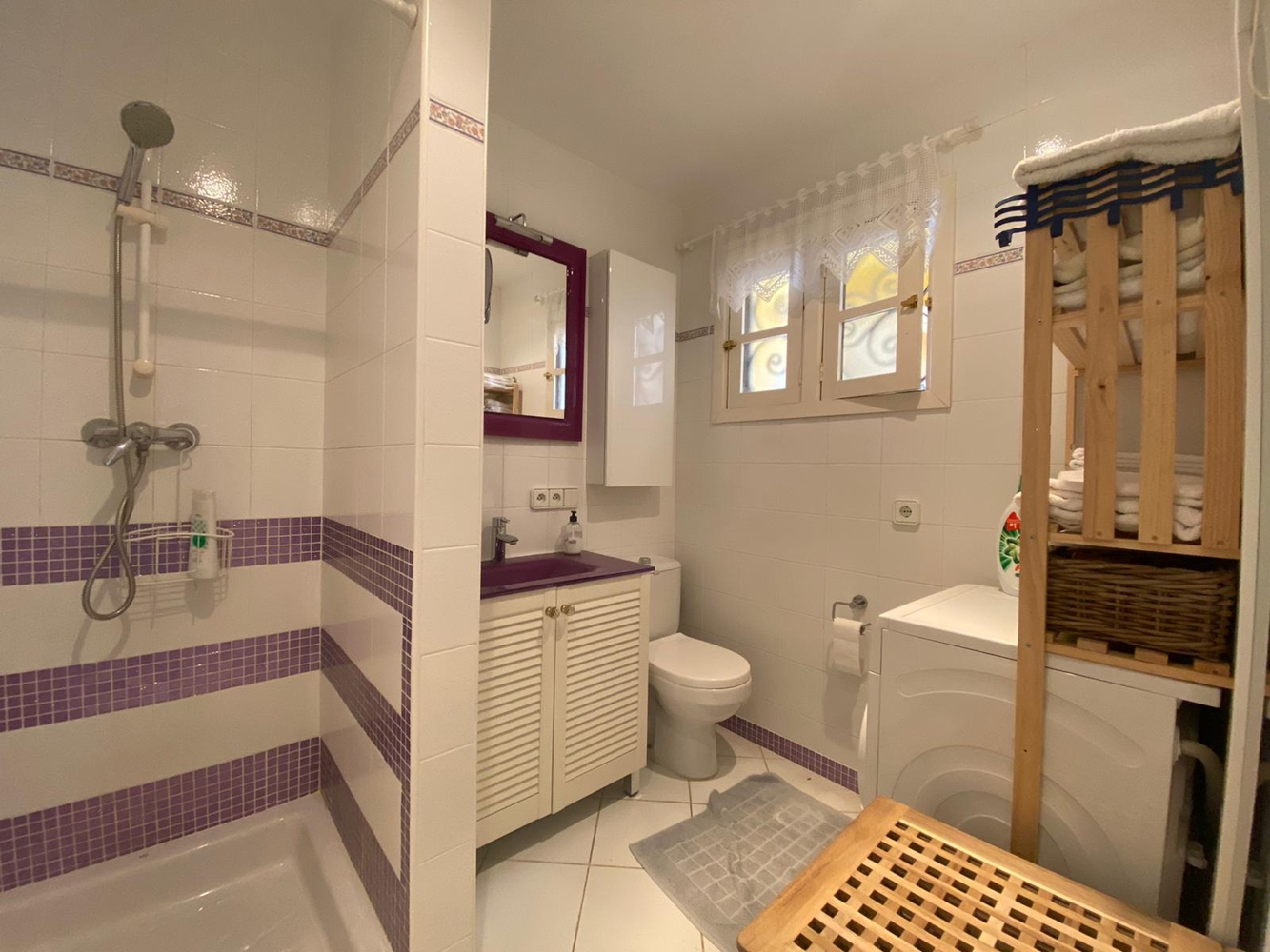 Böden: Fliesen weiss, Küche voll eingerichtet, SAT TV, Klimaanlage, Bad mit Fenster und Dusche, Fenster Holz.Lage der Immobilie