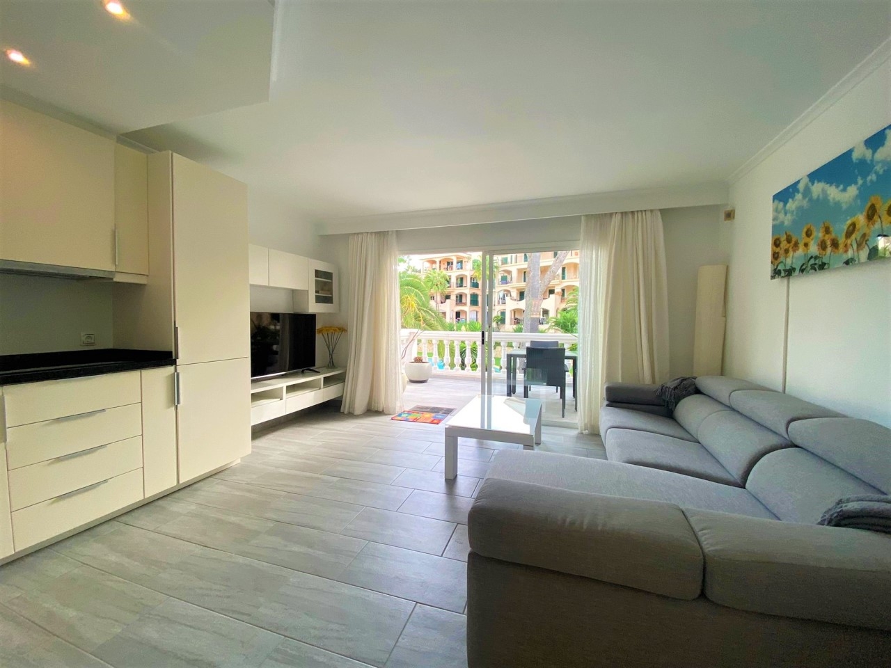 Die Wohnung liegt in einer gepflegten, mediterranen Wohnanlage in Nova Santa Ponsa, nicht weit entfernt vom Hafen Port Adriano.