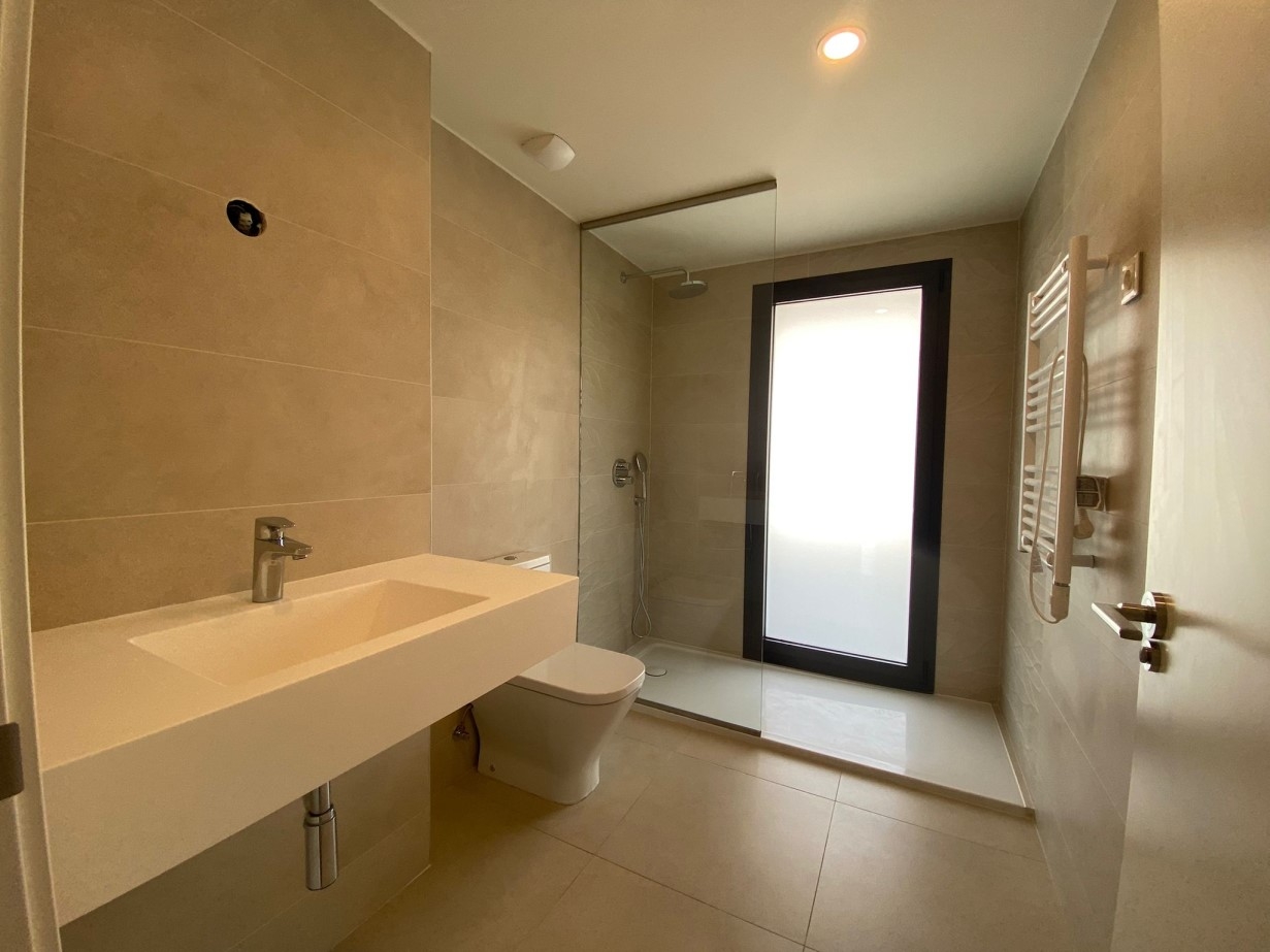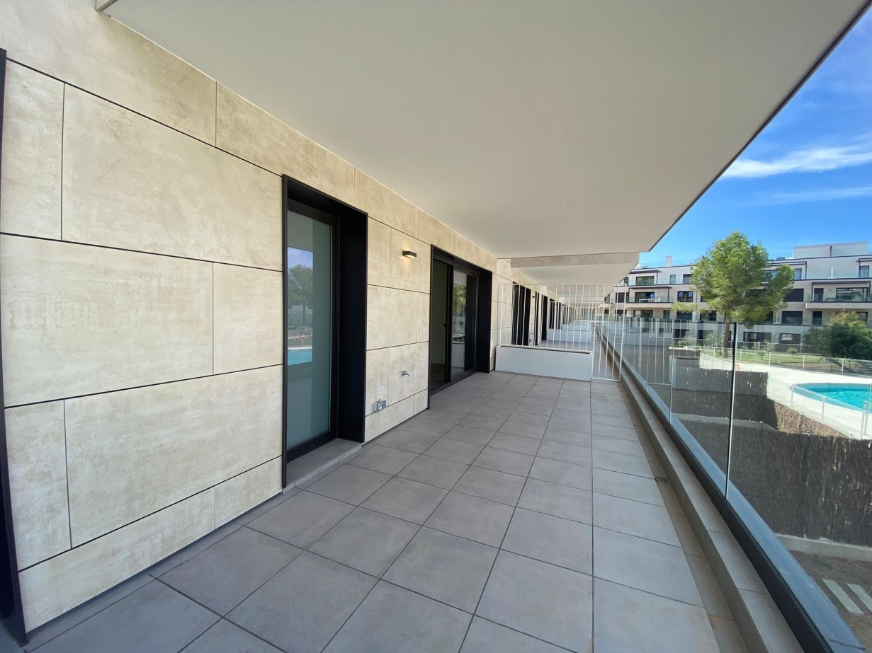 Neubauwohnung in Erstbezug in Santa Ponsa. Die Wohnung liegt in der 1. Etage und hat 2 Doppelschlafzimmer, 1 Einzelschlafzimmer oder Büro, Wohnzimmer mit offener Küche, 2 Bäder und eine grosse West ausgerichtete Terrasse.