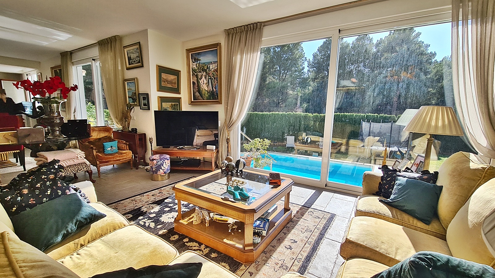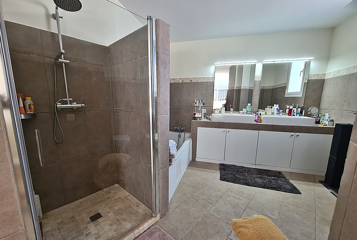 Videoüberwachung, beheizter Pool, Fußbodenheizung (Öl), Vorinstallation für 2 Kamine, Klimaanlage warm/kalt, voll ausgestattete Küche, Steinfliesen, Einbauschränke, Doppel verglaste Aluminiumfenster, elektrische Jalousien, elektrische Markisen, offene und überdachte Terrassen, Garten mit automatischer Bewässerung , Whirlpool im Hauptbadezimmer, Hauswirtschaftsraum. Das ca 150m2 grosses Untergeschoss bietet die Möglichkeit für Heimkino und/oder Fitnessraum.