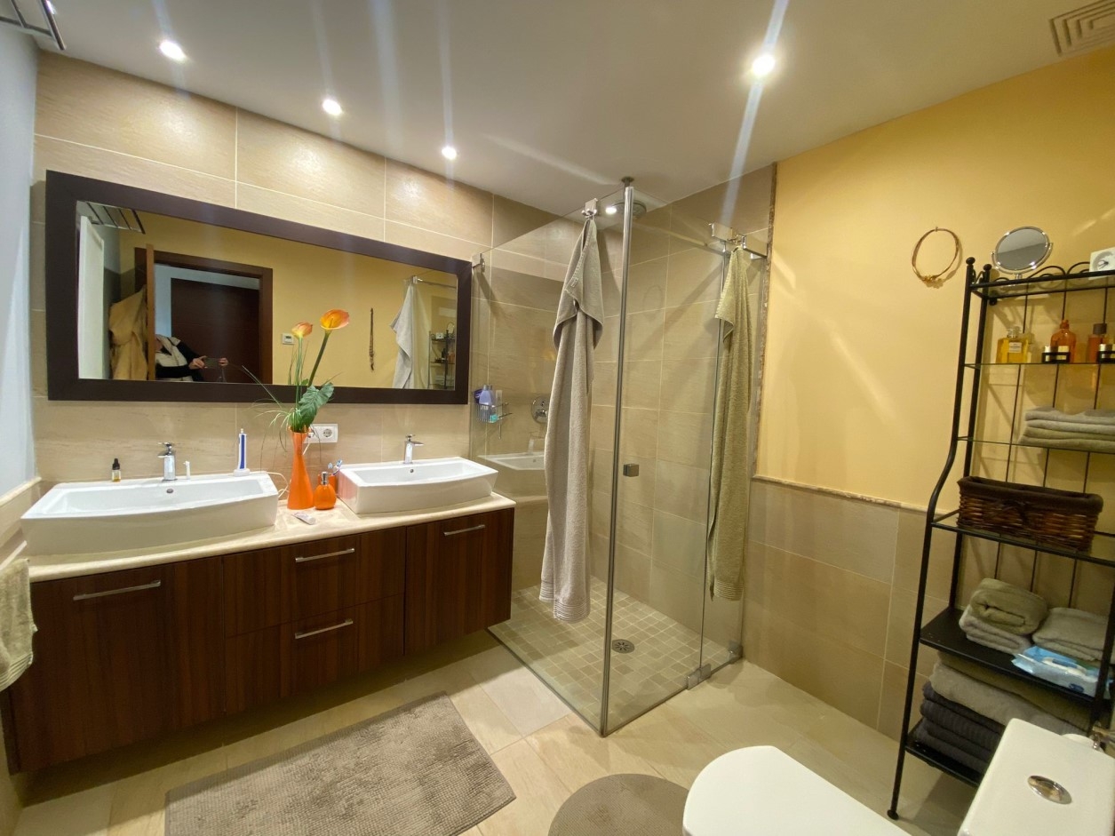 Im 1. OG befinden sich 3 Schlafzimmer sowie 2 Bäder, 1 en Suite von welchem man aus man bis zum Meer schauen kann.
