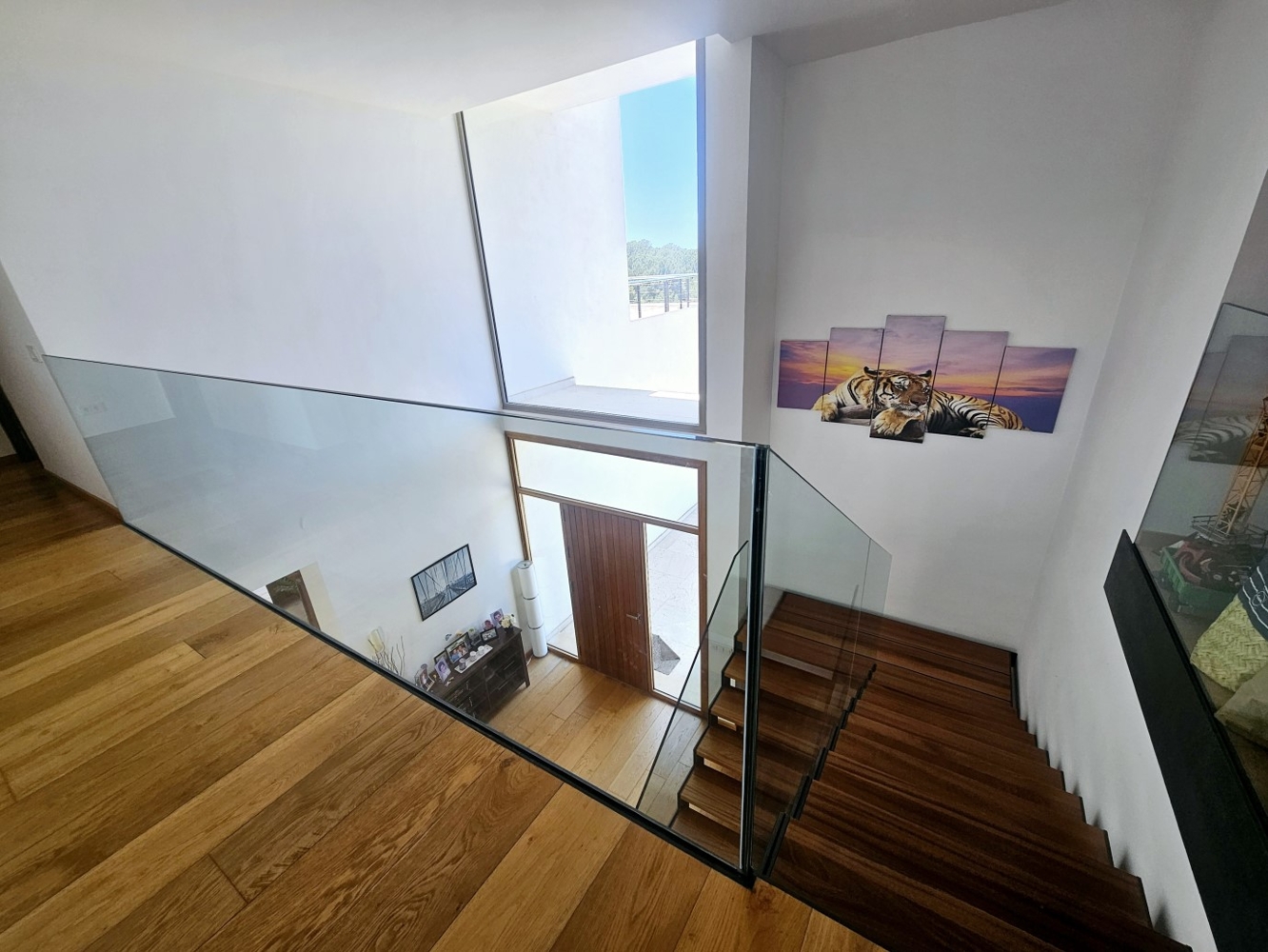 Das Obergeschoss besteht aus einem Arbeitszimmer/Bibliothek, drei Schlafzimmern, zwei davon mit Badezimmer en suite und einem weiteren zusätzlichen Badezimmer. Es gibt auch drei Außenterrassen mit spektakulärer Aussicht. Mit der Aufteilung und dem Platzangebot könnte auf dieser Etage problemlos ein weiteres Schlafzimmer gebaut werden.