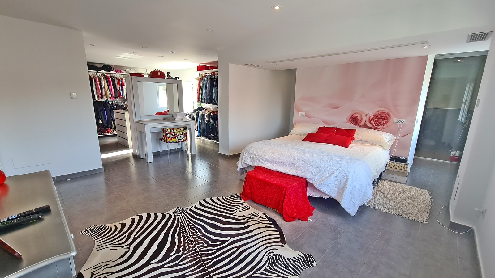 Eine elegante Treppe führt in die obere Etage mit 3 weiteren Schlafzimmern mit 3 Badezimmern (alle integriert oder en suite). Das Hauptschlafzimmer verfügt außerdem über ein separates, offenes Ankleidezimmer.