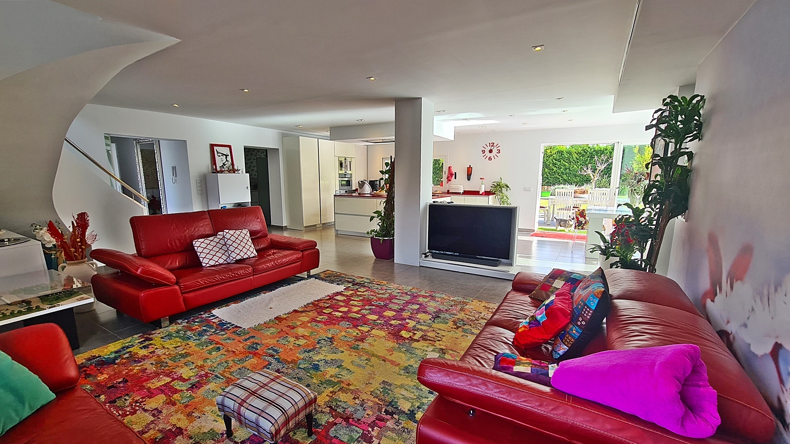 Solaranlage für Strom und Warmwasser, zentrale Fußbodenheizung mit modernster Wärmepumpentechnologie, Ladestation für Elektroautos, Klimaanlage, Videoalarm, Video-Gegensprechanlage, Einbauschränke. TV-Anschluss in allen Zimmern.Lage der Immobilie