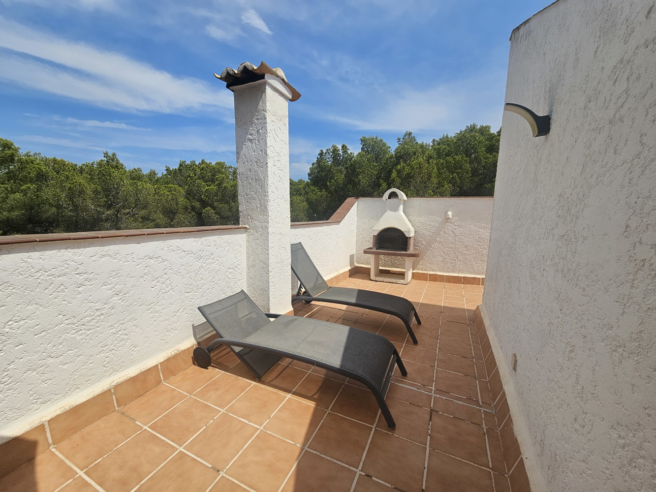 Der dritte Stock öffnet sich zu einer privaten Dachterrasse mit herrlichem Meerblick – ein idealer Ort zum Entspannen in der Sonne oder für Grillabende und gemütliche Stunden.