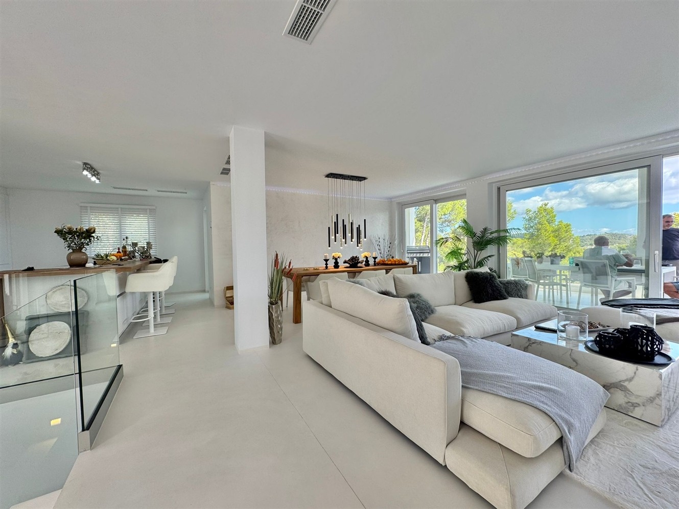 Schon vom großzügigen Wohnbereich aus öffnet sich ein fantastischer Meerblick, der das mediterrane Lebensgefühl perfekt einfängt.