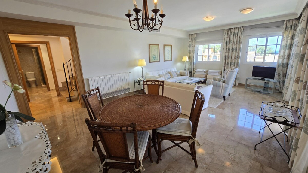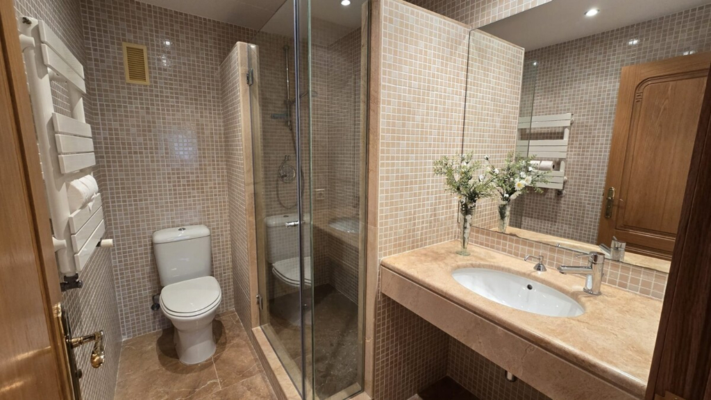 Der Zugang erfolgt bequem und diskret über einen privaten Aufzug. Im Inneren eröffnet sich ein großzügiger, lichtdurchfluteter Wohnbereich mit hohen Decken und integriertem Essbereich, der ein einladendes und zugleich edles Ambiente schafft. Drei geräumige Doppelschlafzimmer, jeweils mit eigenem Bad en suite, garantieren höchsten Wohnkomfort und Rückzugsmöglichkeiten.