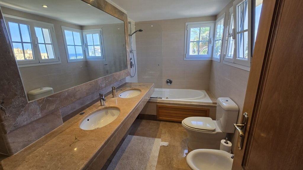Ein absolutes Highlight ist die weitläufige Terrasse mit unvergleichlichem Panoramablick – von den gepflegten Gartenanlagen bis hin zum tiefblauen Mittelmeer. Teilweise überdachte Außenbereiche bieten angenehmen Schatten und laden zu entspannten Stunden unter Mallorcas Sonne ein.