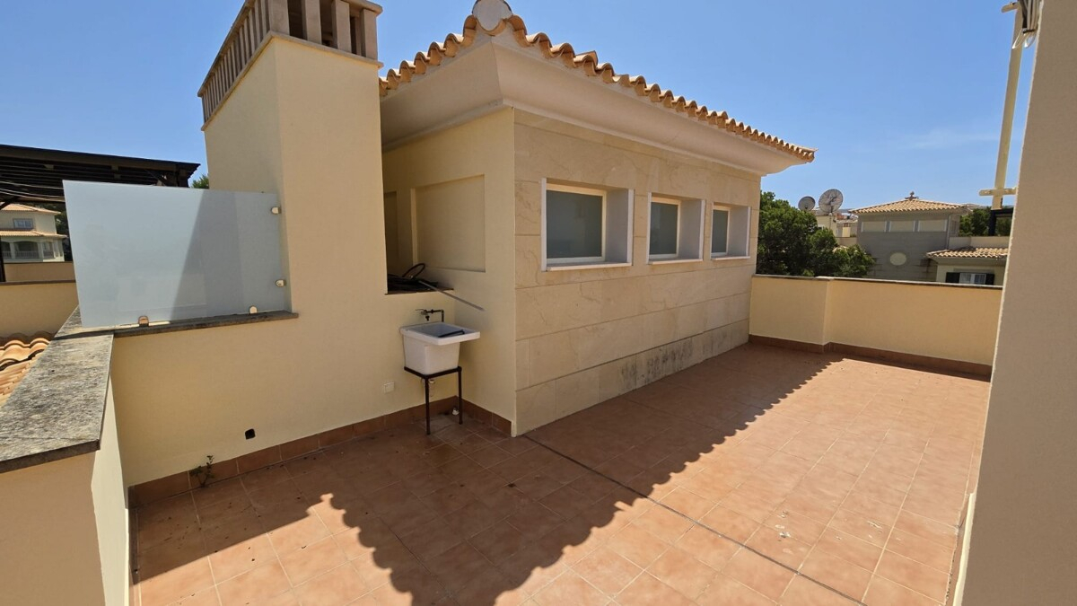 Ein absolutes Highlight ist die weitläufige Terrasse mit unvergleichlichem Panoramablick – von den gepflegten Gartenanlagen bis hin zum tiefblauen Mittelmeer. Teilweise überdachte Außenbereiche bieten angenehmen Schatten und laden zu entspannten Stunden unter Mallorcas Sonne ein.