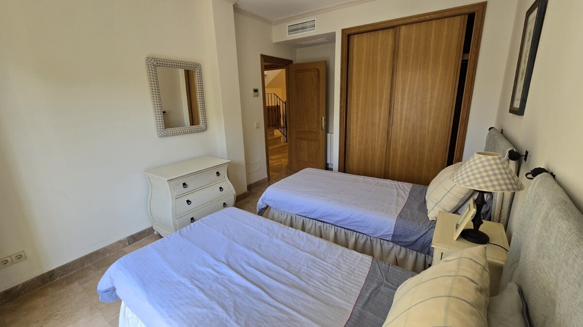 Zur Ausstattung gehören zudem ein Gäste-WC, Klimaanlage, Heizkörper, praktische Einbauschränke, ein Hauswirtschaftsraum, ein separates Abstellzimmer sowie zwei Stellplätze innerhalb der Anlage.