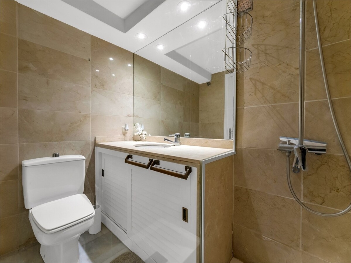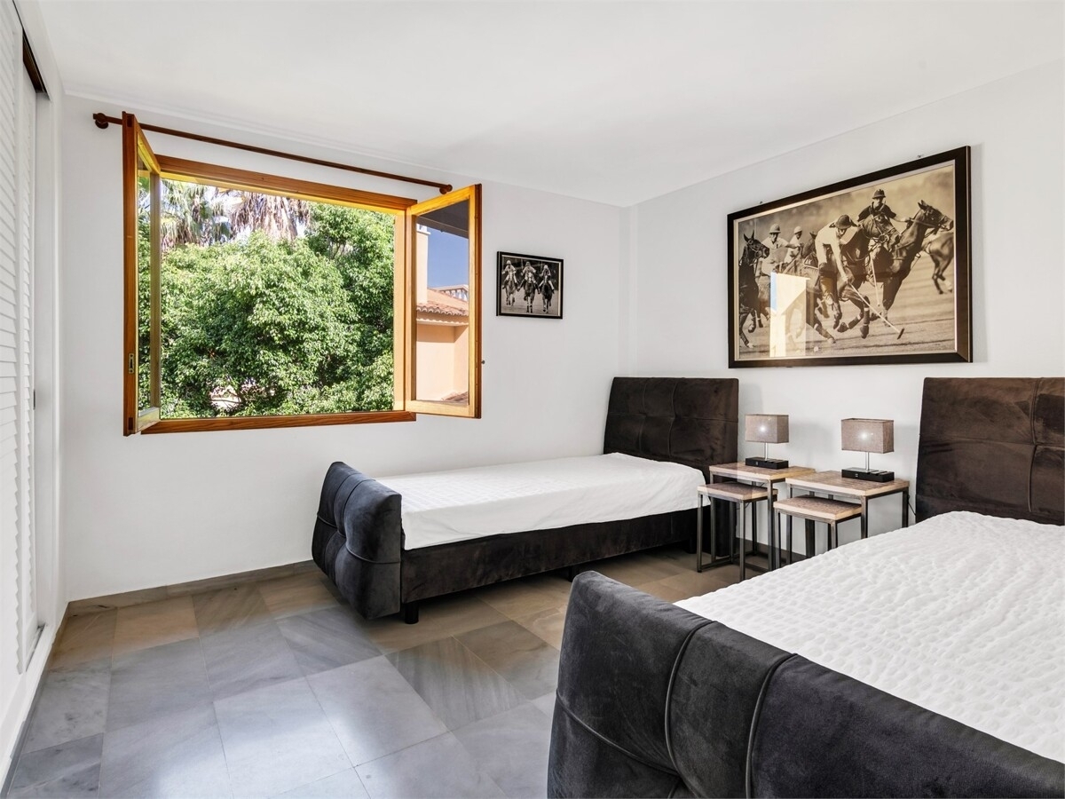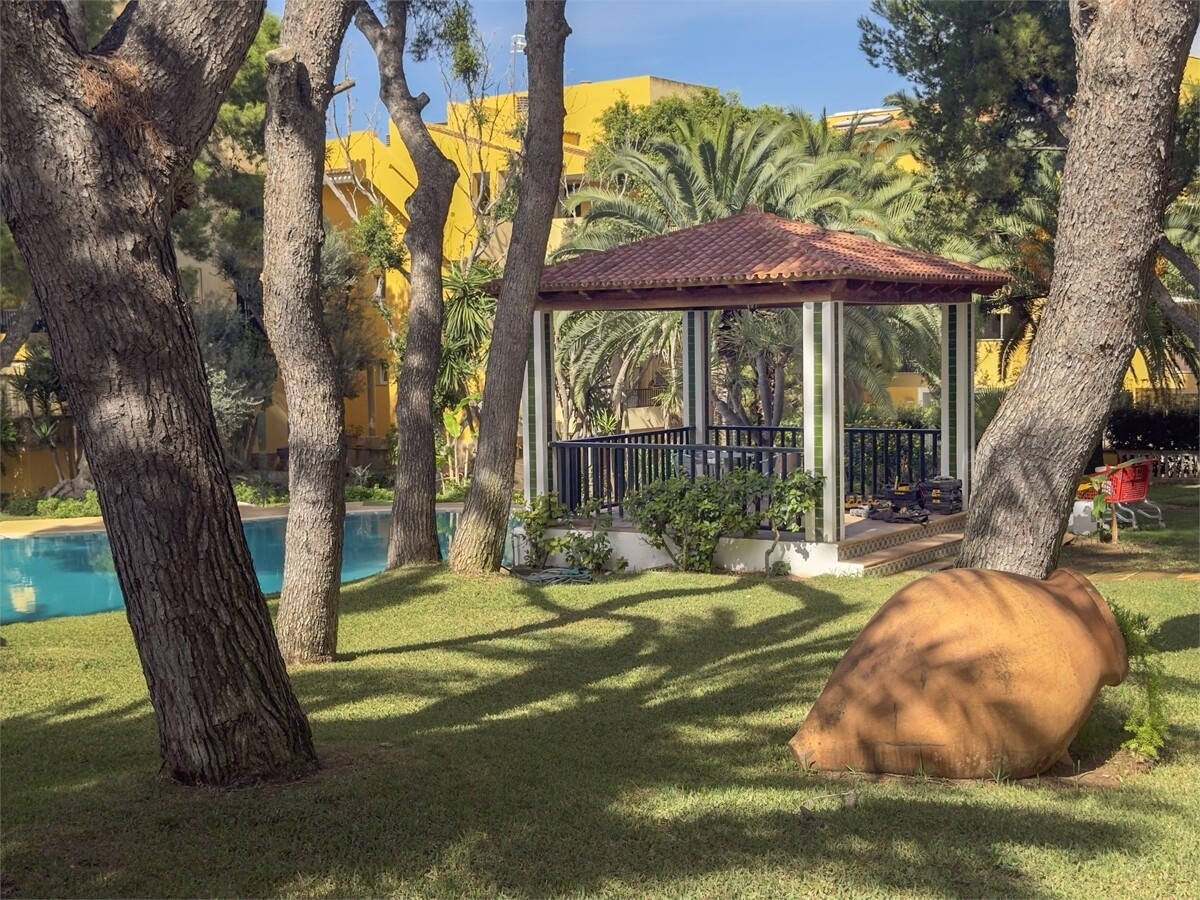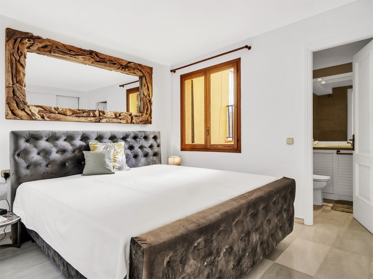 Zwei komfortable Schlafzimmer bieten Ruhe und Privatsphäre, ideal als Hauptwohnsitz oder luxuriöse Ferienimmobilie. Die gepflegte Anlage verfügt über eine großzügige Poollandschaft, mediterrane Gärten und ein ruhiges, exklusives Ambiente.