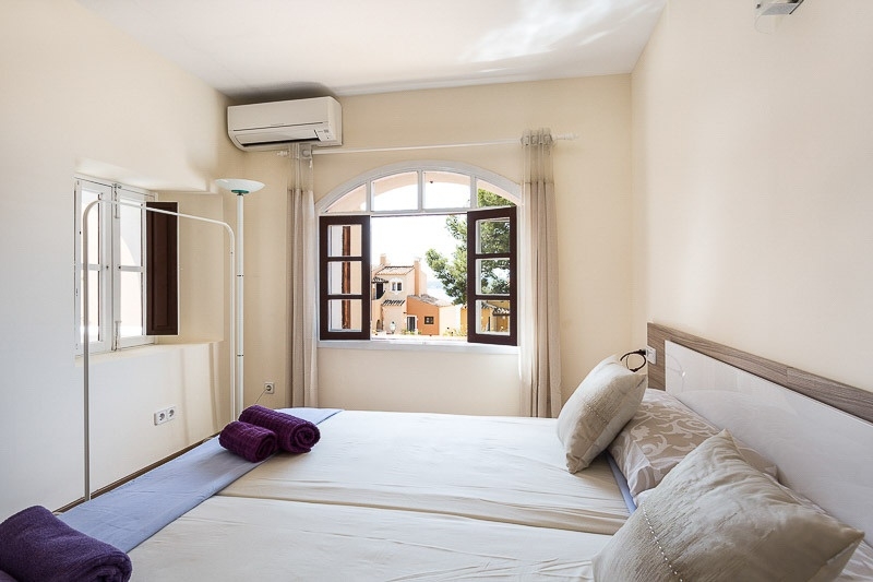 This apartment has been this year completely renovated and well equipped. It offers a living room with modern open kitchen, a bedroom, and a modern bathroom with shower. From the terrace you enjoy beautiful views over the roofs of Cala Fornells and over the sea. An ideal holiday apartment with high rental potential. The complex offers a community pool, and spacious open and covered terraces with private sea access for the owners.