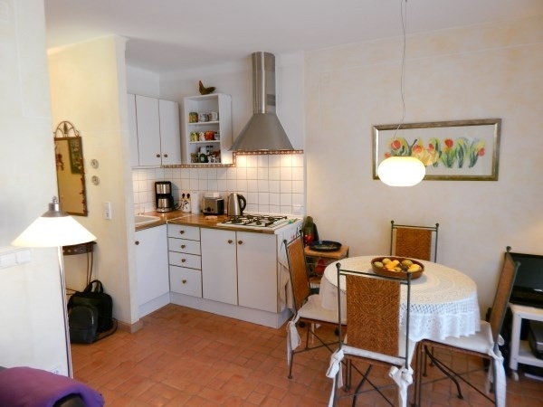 Ground floor: hallway, living and dining room with small open kitchen, 1 covered terrace, 1 quiet bedroom, 1 bathroom, 1 garden terrace on the back of the house