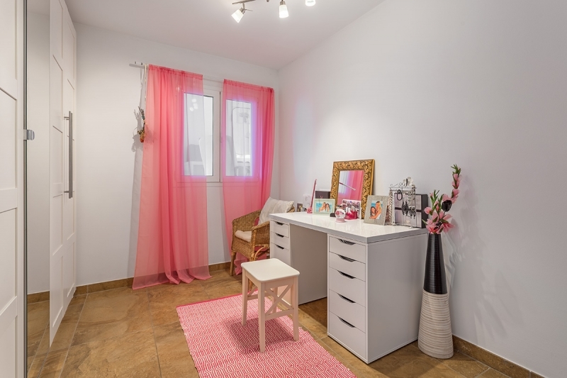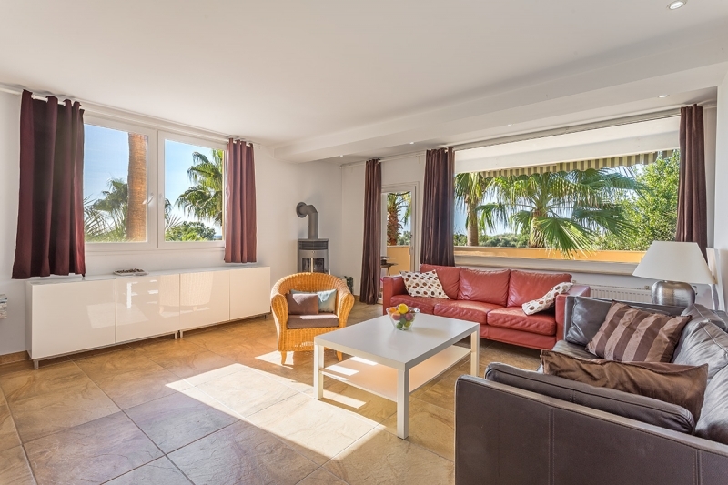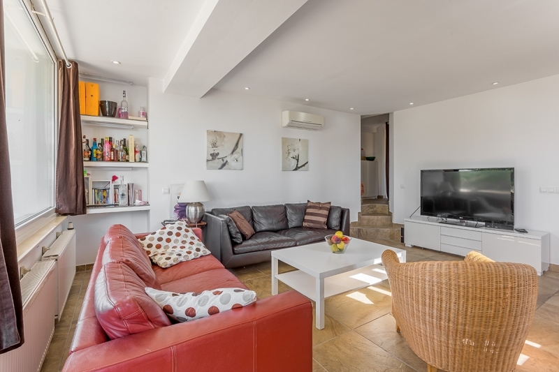 From the lower living area you reach the 1st floor. There are 2 bedrooms and 2 bathrooms, as well as a large living area and a total of 4 terraces.