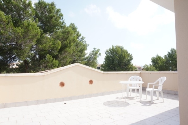 In the upper area there is a large room with a separate terrace which can be used both as a bedroom and as a playroom for kids or study.