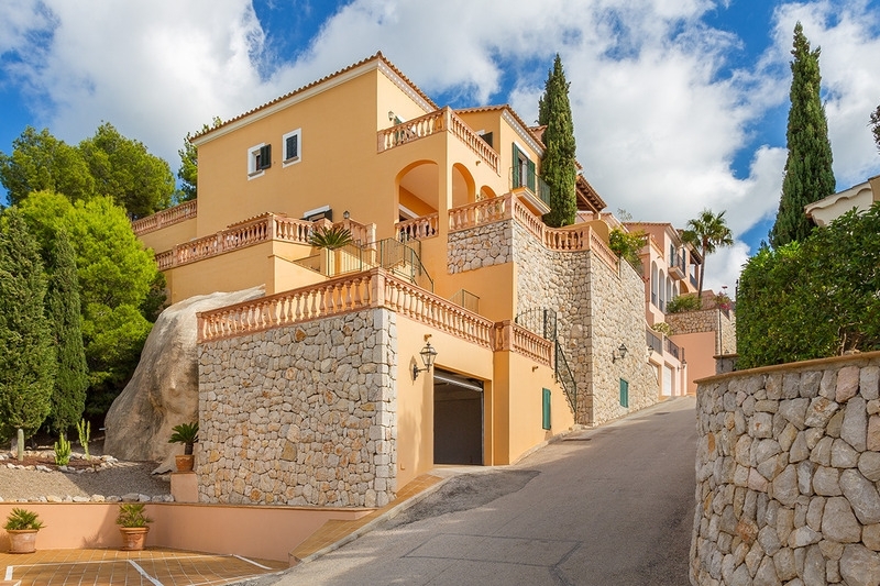 Top of the hill with fantastic sea views on Portals and to Palma you can enjoy from this beautiful villa in Mediterranean style.The villa is located in a closed and luxurious community and offers the new owner the security of a closed residential complex with the advantage of very much privacy.