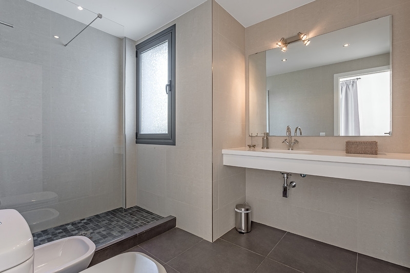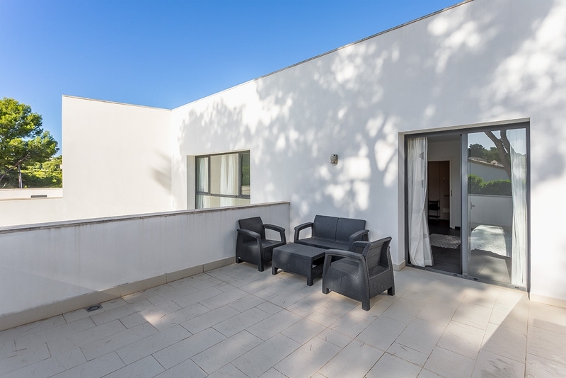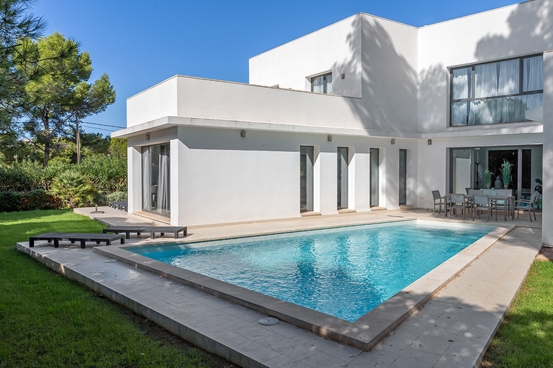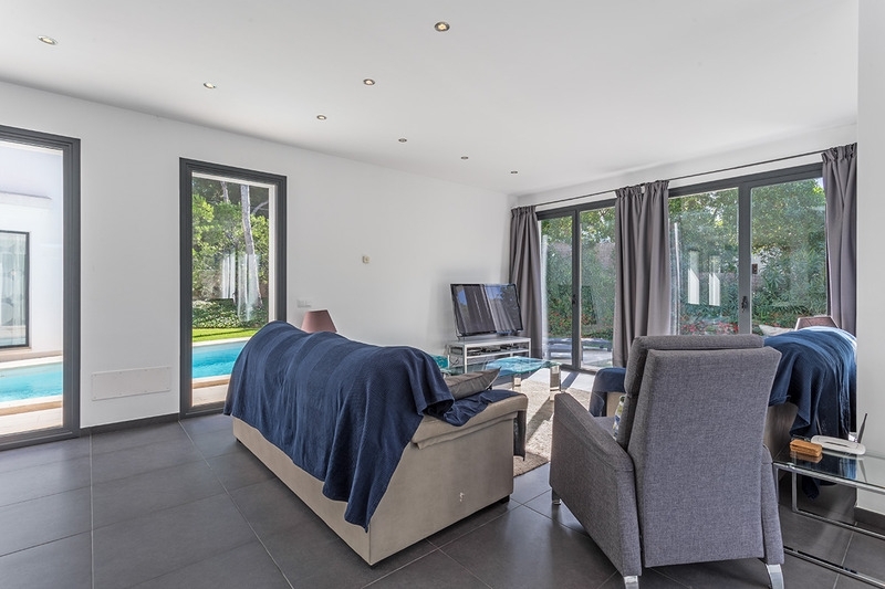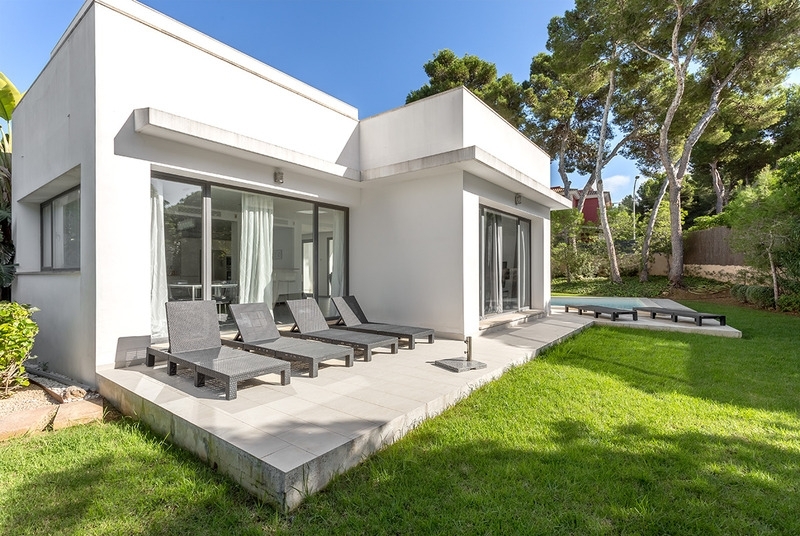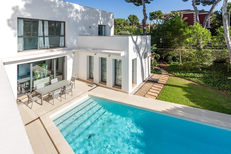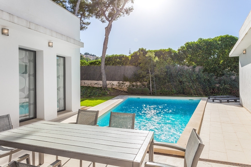 Modern villa in Santa Ponsa.As you enter, you look out to the pool and garden area.