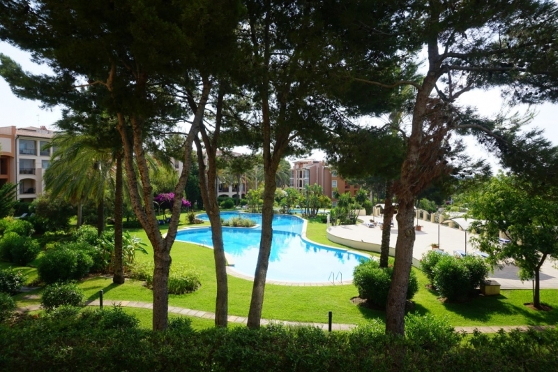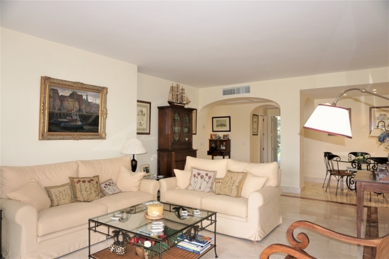 The spacious living area has access to the south / west terrace with views over the complex and the community pool area.