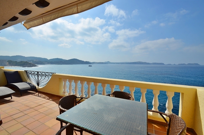 Geniessen Sie einen Traum Blick in Cala Fornells und hören Sie das Rauschen des Meeres.Diese wunderschöne und komplett renovierte Wohnung liegt in einer kleinen Wohnanlage in Cala Fornells in 1.Meereslinie mit eigenem Meerzugang.