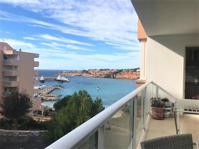 For long term rental in Mallorca this apartment is offered above the port of Port Adriano.