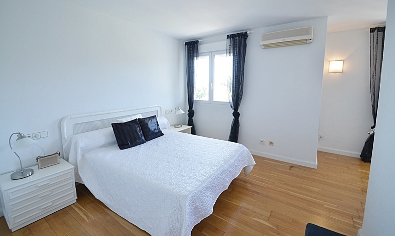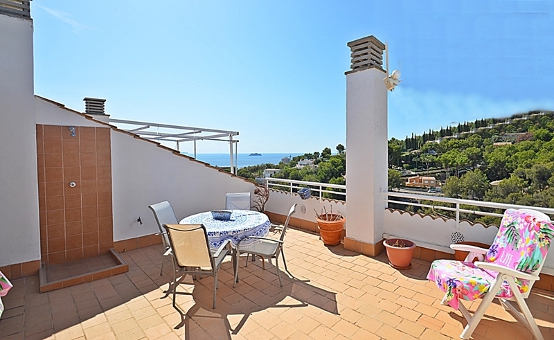 In the lower living area, the modern and bright living room with access to the sea view terrace and kitchen with adjoining utility room and separate WC. Over a beautiful marble staircase leads to the upper sleeping area with a large master bedroom and another double bedroom and a bathroom.An additional highlight of this penthouse offers a secluded roof terrace with shower, BBQ and a further room that can be used both for storage and as a small guest room or office.