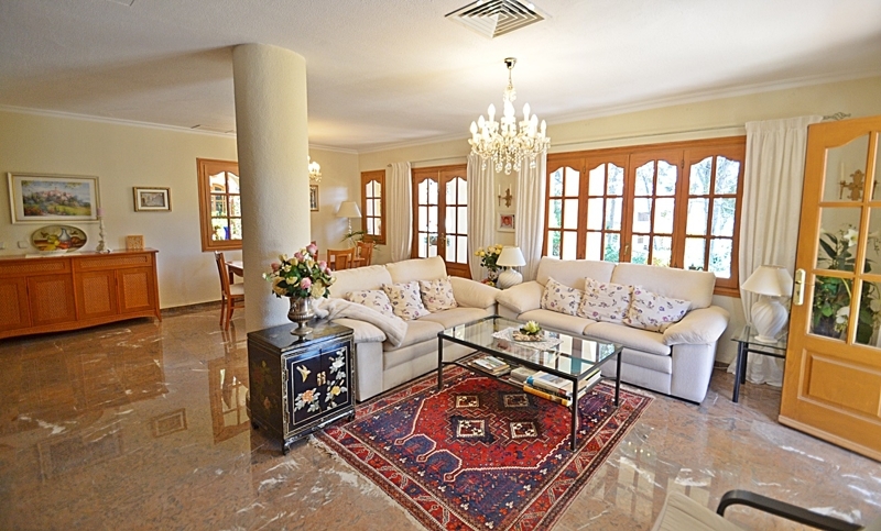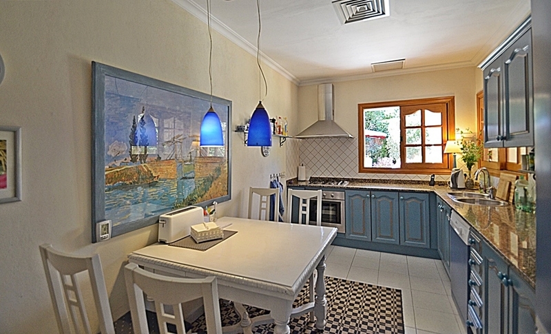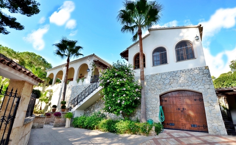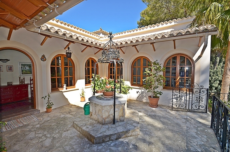 Charming Villa in Paguera. Built in 1966 in hacienda style and completely renovated in 2010. Only a few minutes to the beach and the center.303 m2 constructed area, 240 m2 living space according to cadastral extract. Living room 40m2 with fireplace, dining room, large kitchen, gallery, 3 bedrooms, 3 bathrooms including 2 en suite, small tower with guest room and another guest room in the converted bodega, utility room, and a patio with fountain (water reservoir).