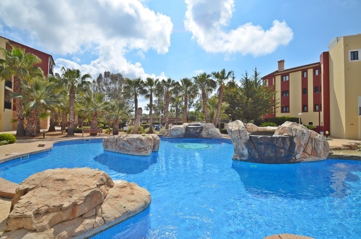 The penthouse apartment is within walking distance of the beach of Santa Ponsa in a gated community with a large lagoon pool and indoor pool.It offers 2 bedrooms, 2 bathrooms (one en suite), kitchen with hatch and a 15 m² covered terrace.
