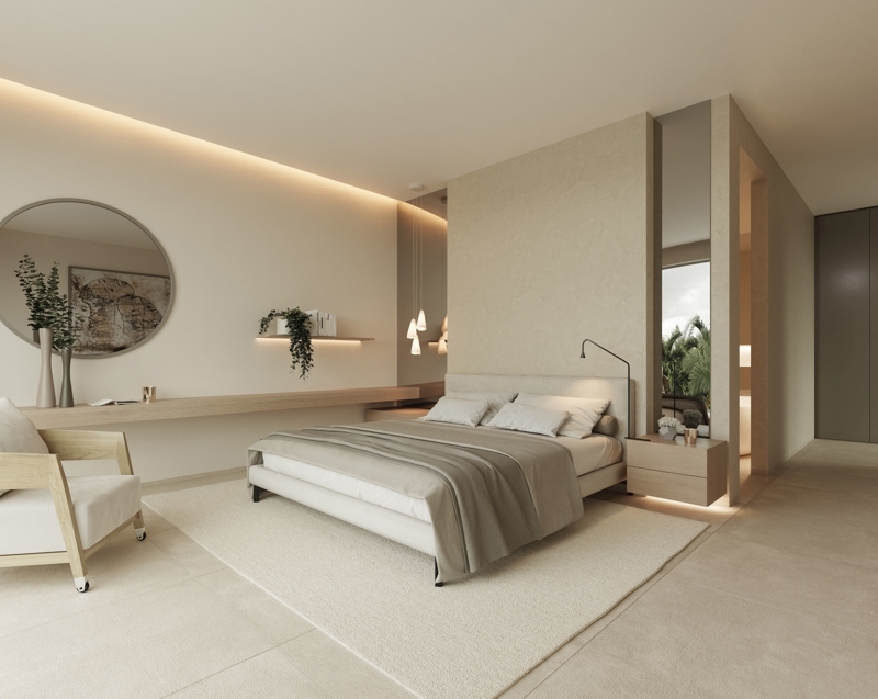 On the ground floor there are 3 en-suite bedrooms and the entrance area of the villa.