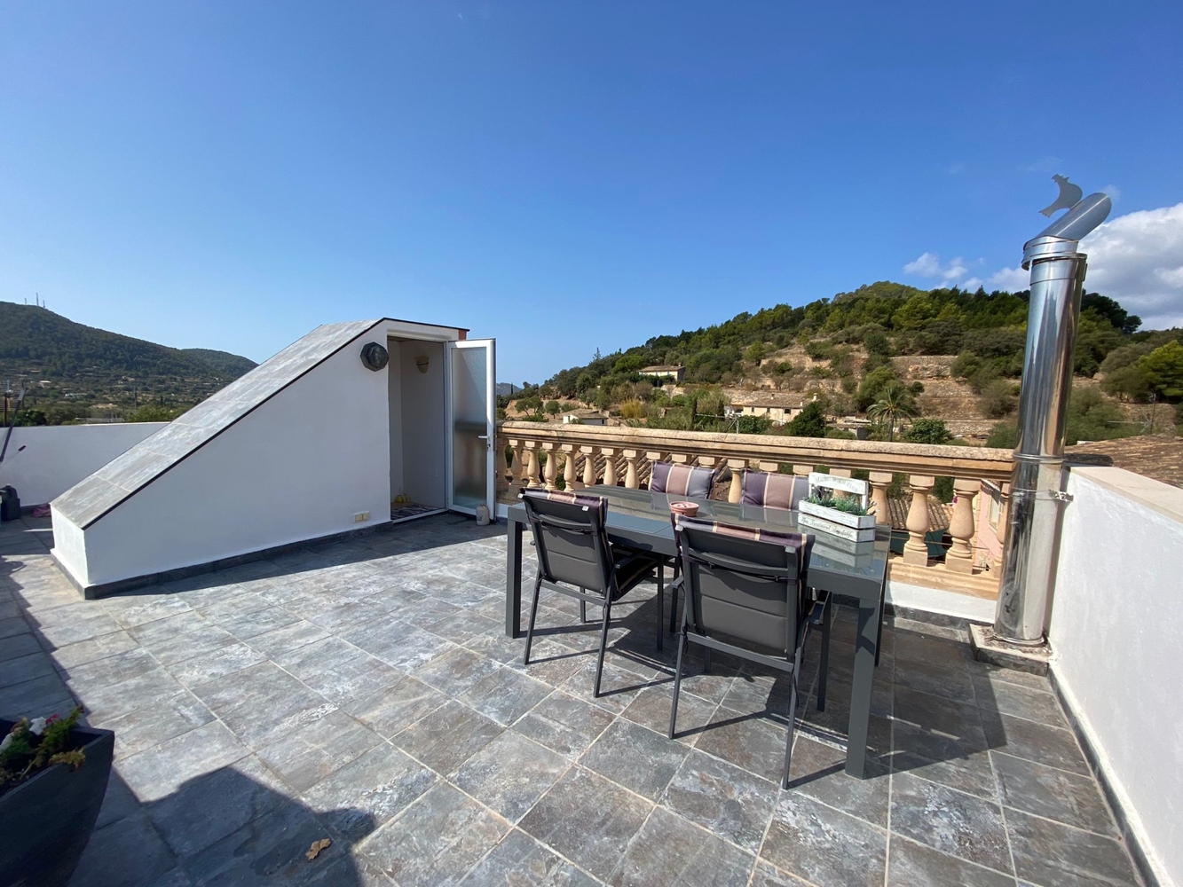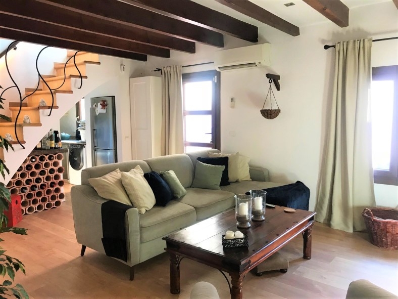 This lovingly renovated village house is located on the outskirts of Andratx with stunning mountain views and pure tranquility. The house is divided into a living / dining area with kitchen on the ground floor, 2 bedrooms and 2 bathrooms on the 1st floor and a great roof terrace with mountain views.As a special feature, there is an adjacent plot, which is included in the purchase price. This property has a size of 99 m² and is perfect for the construction of a pool. The already existing carpot and the storage room are being legalized and could be converted into a guest apartment.