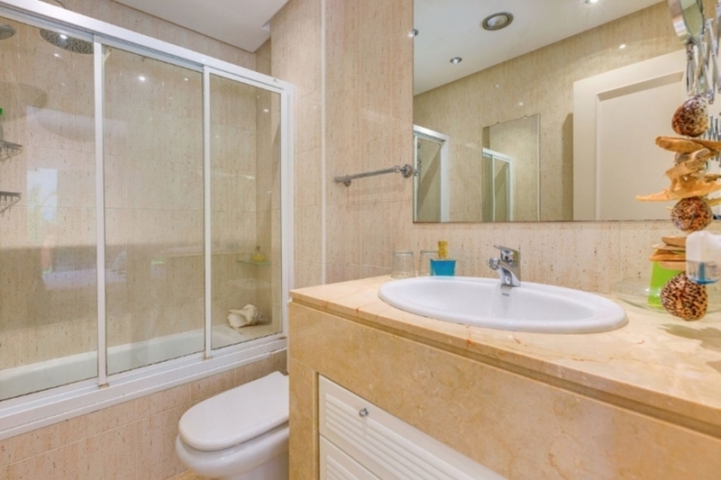 Duplex of 154 m2 + 111 m2 private gardens, in an exclusive gated community. It has a large living room with terrace, three bedrooms, two bathrooms and a separate toilet. All rooms have fitted wardrobes and air conditioning hot / cold (installation is completely new 8 months ago), as well as access to their Individual gardens.The kitchen is large and has equipment and water system by reverse osmosis, it has exit to a laundry room with water softener for the whole house. The floors are marble.