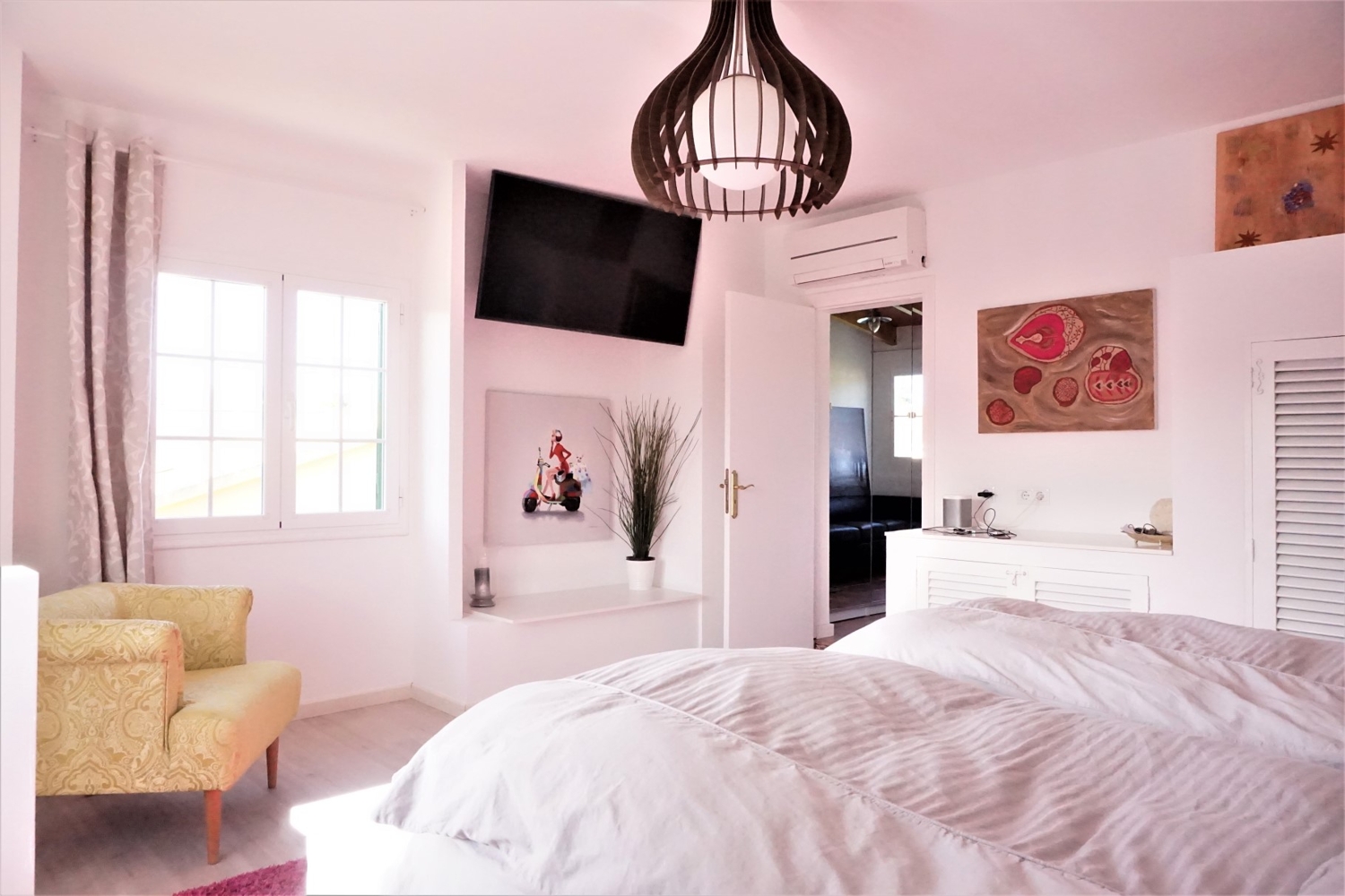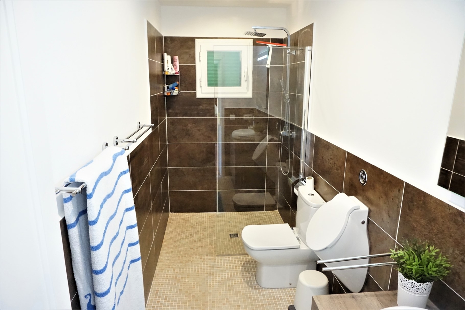 On the 1st floor there is a separate apartment with a spacious bedroom, 1 bathroom with terrace and an entrance area with a large closet.