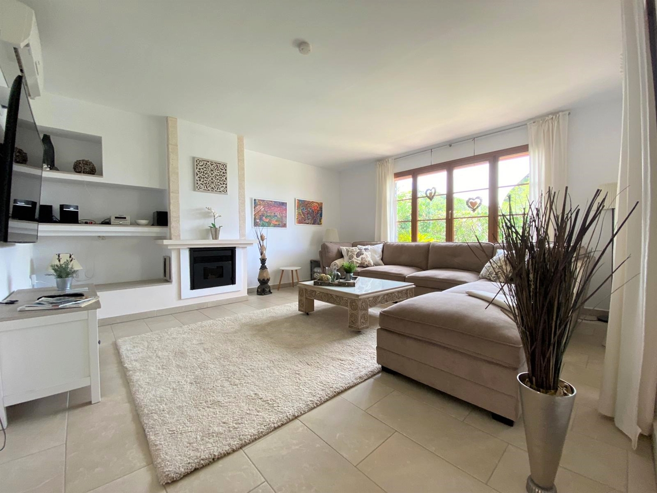 The beautiful corner house enjoys sun all day, including the evening sun and is located in a well-kept, closed residential complex in Santa Ponsa with 2 community pool areas.Entrance through a small garden door into a beautiful patio with a seating area.