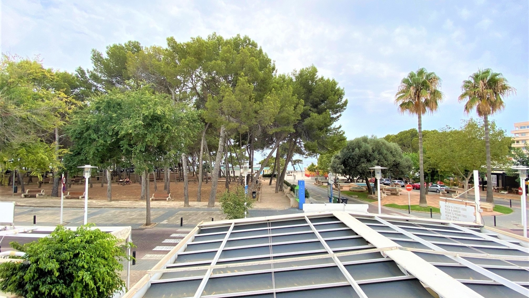 Nice, completely renovated apartment for sale directly on the boulevard and beach of Paguera Mallorca.The apartment is located in a small residential building with only 6 units on the 1st floor and is divided into 1 double bedroom, 1 single bedroom, 1 bathroom with window, living / dining area with open kitchen. The window front can be opened completely.