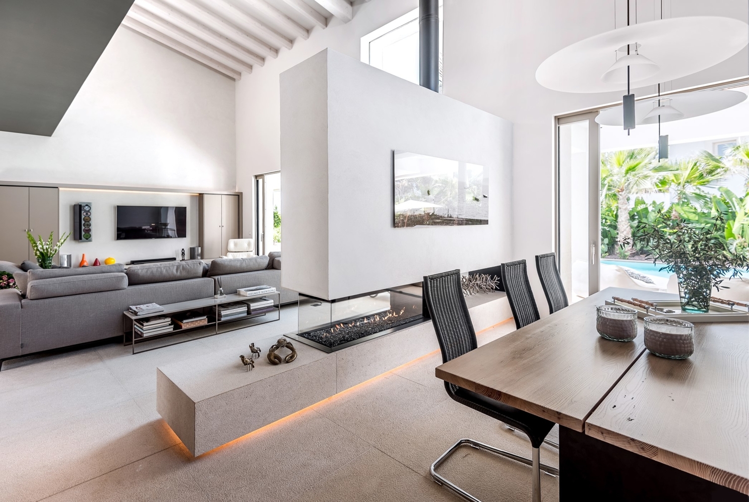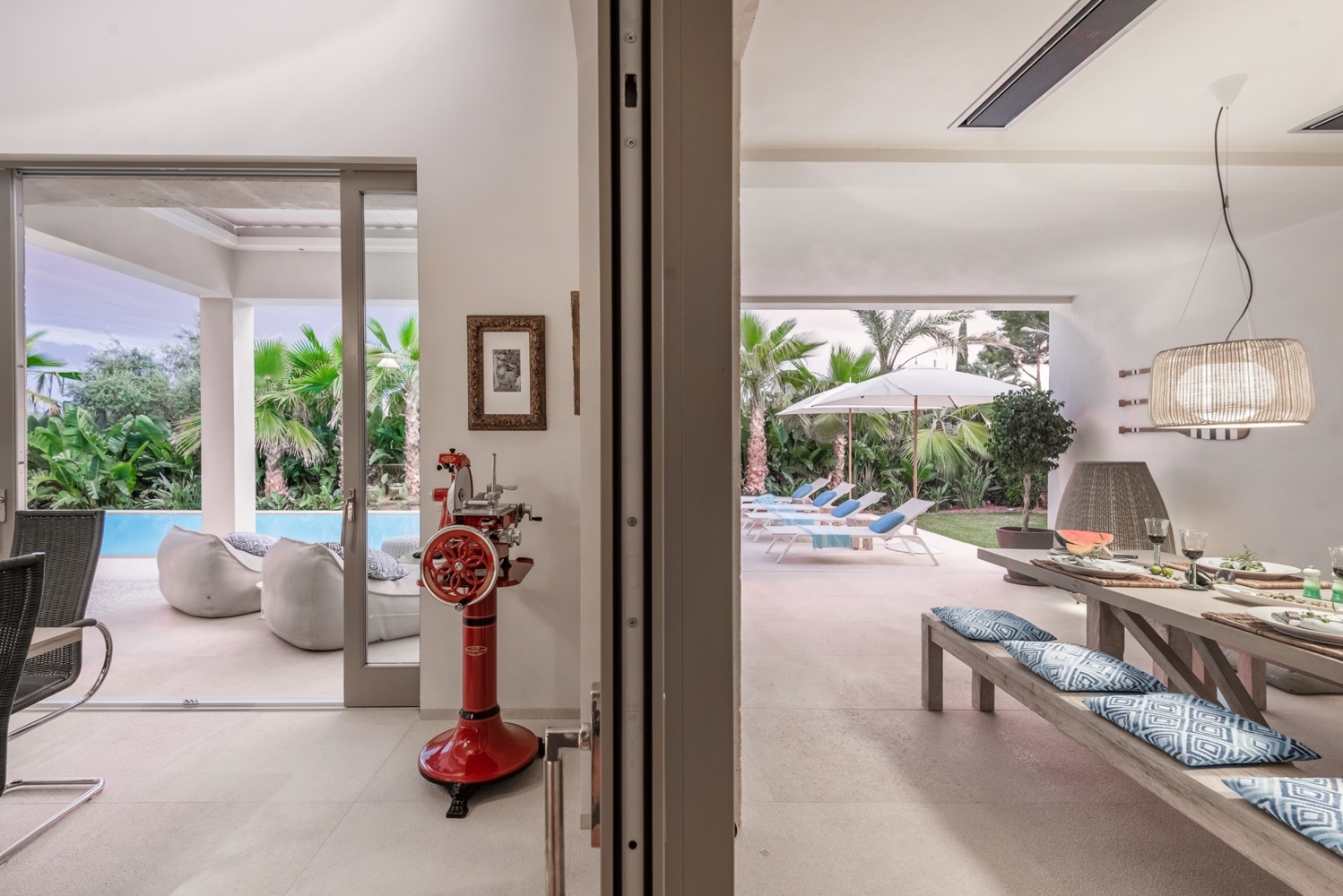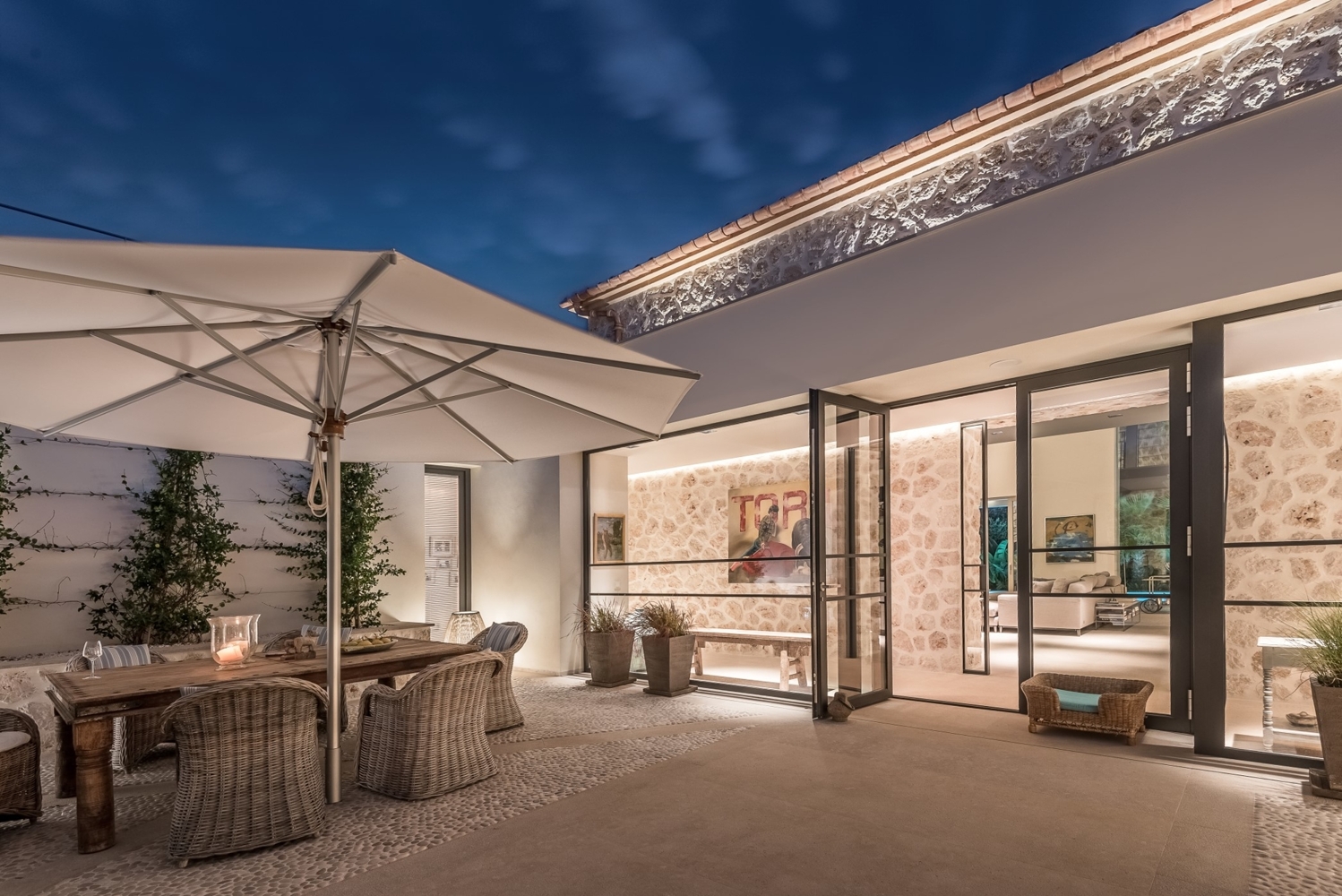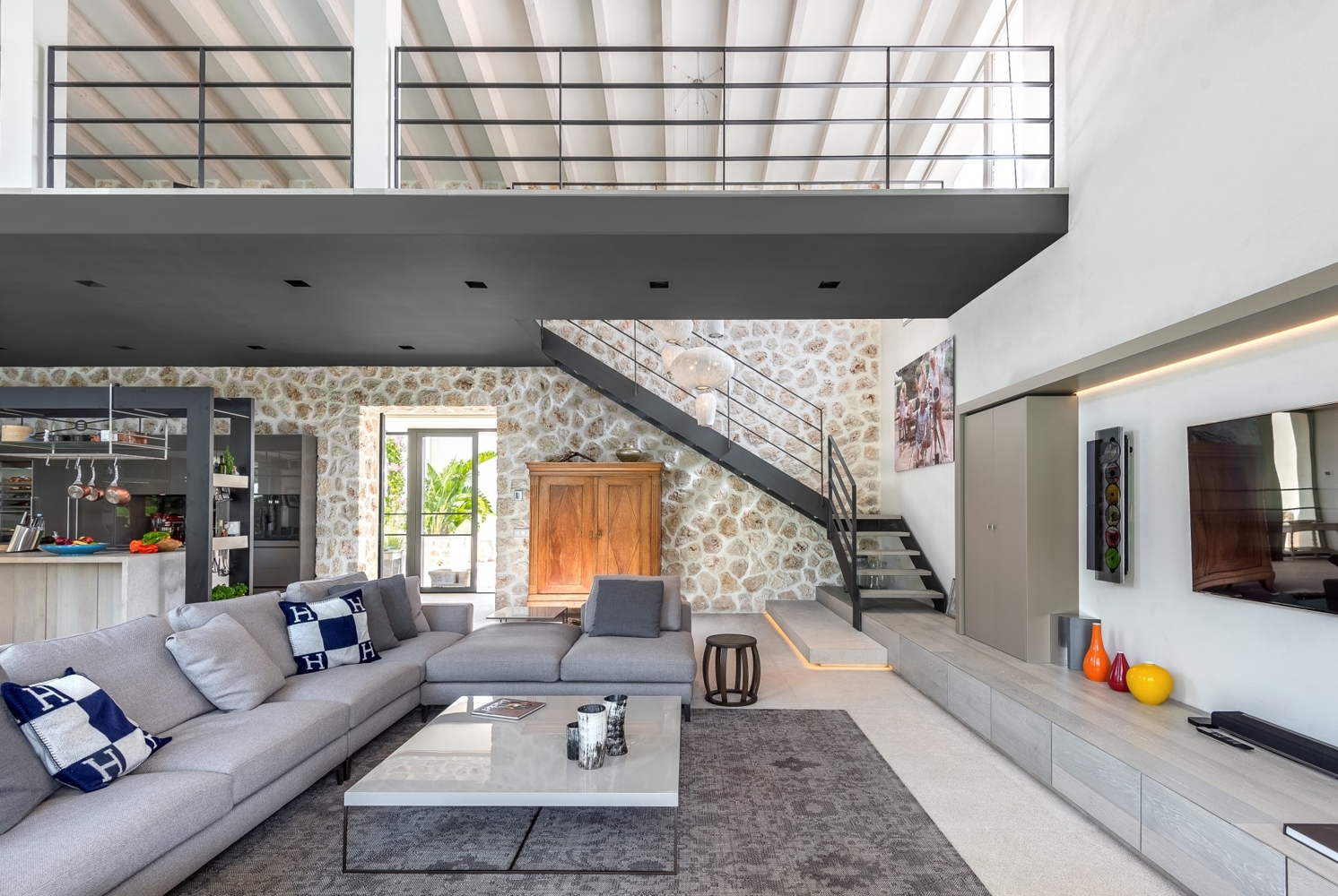 Natural stone floors Levante Beige, aluminum windows with double glazing, underfloor heating with heat pump, c / w air conditioning, gas fireplace, gallery, Birgit Müller kitchen, cellar, double garageProperty location