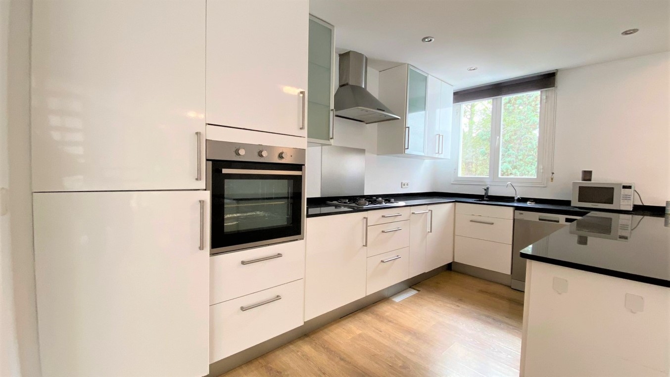 This lovely reformed apartment on entry consists of an open plan living/dining/kitchen area and a guest bathroom. The wooden stairs lead to 3 bedrooms and 2 bathrooms downstairs.