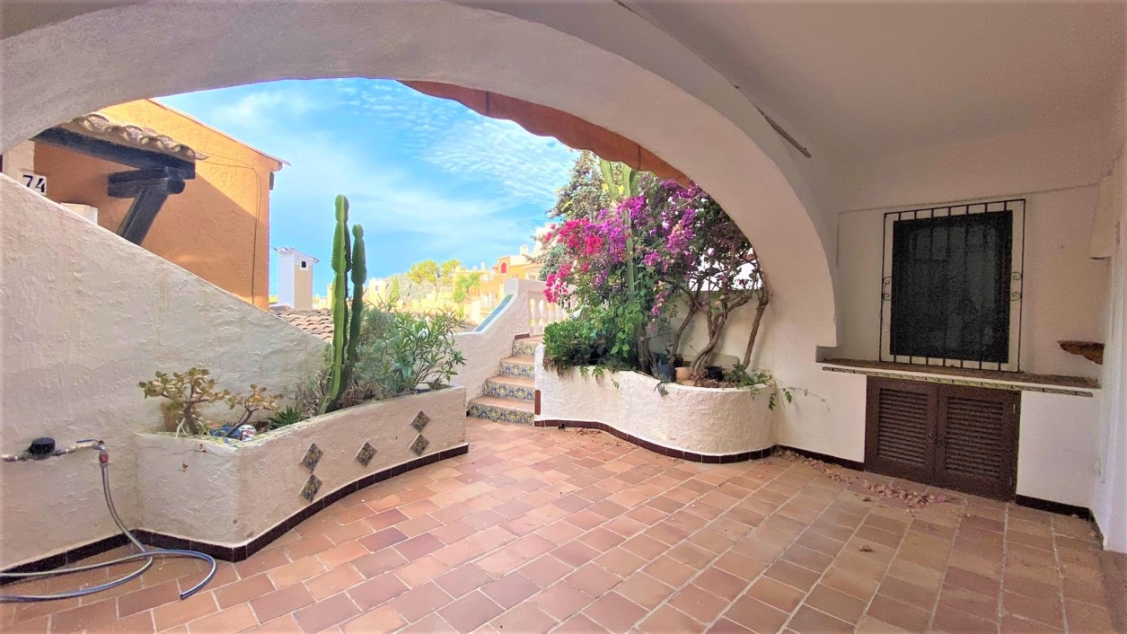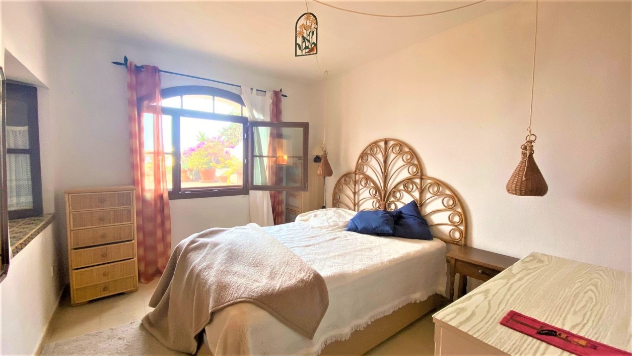 Renovation property with terraces of approx. 30 m2, lots of potential and sea view.The apartment is located in the wonderful residential complex Aldea 1 and offers besides 2 large terraces 1 bedroom, 1 bathroom with shower, 1 guest toilet and open kitchen to the living area.