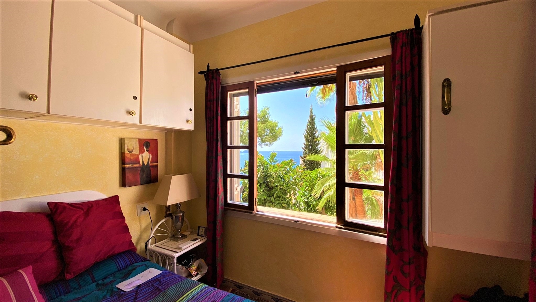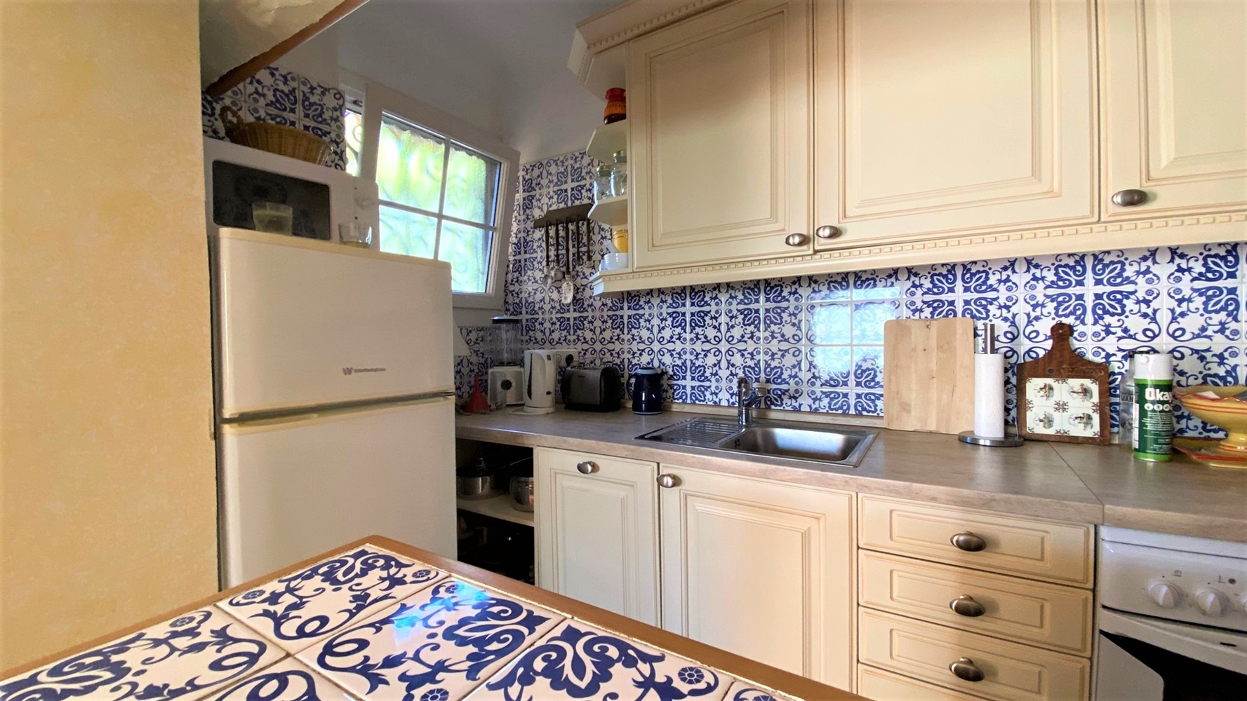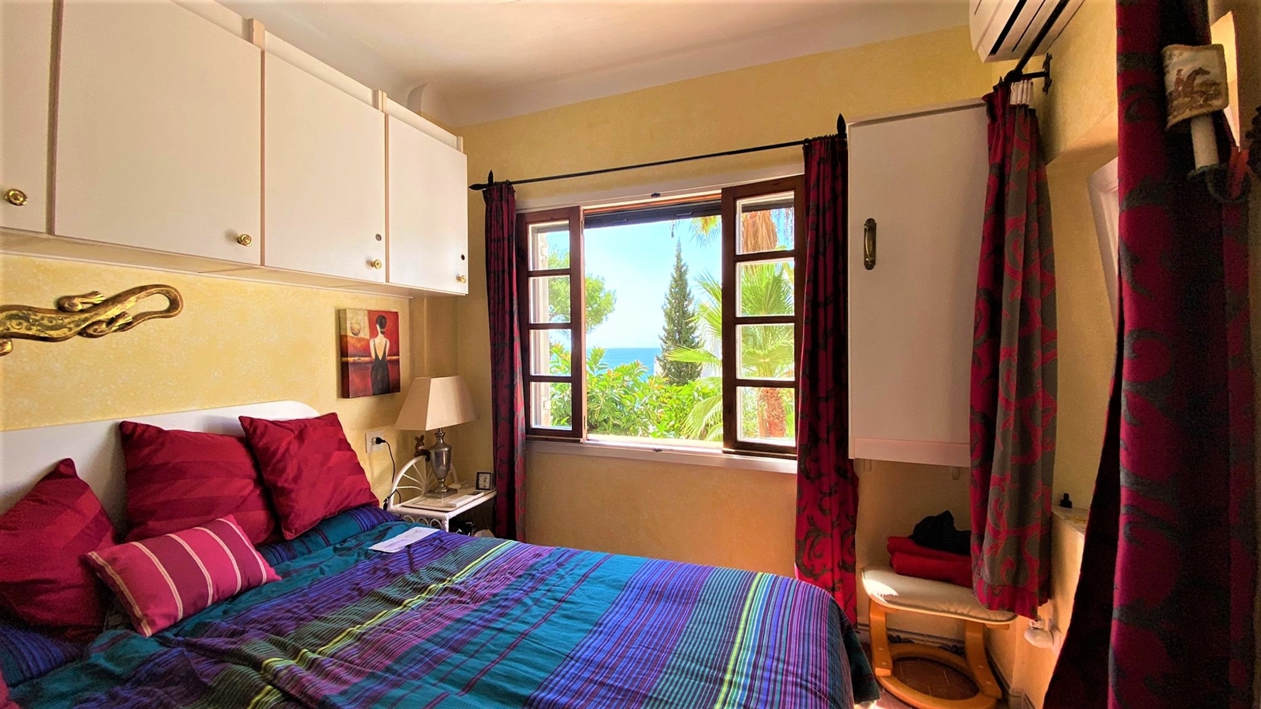 This beautiful apartment is quietly located on the edge of the Aldea 1 residential complex in the beautiful Cala Fornells. The 58 m2 terrace is partially covered and has a perfect south orientation with a great, unobstructed sea view.The apartment is on the ground floor (no stairs), which means from the opposite parking lot, you can reach the apartment barrier-free. It is equipped with 1 bedroom, 1 bathroom, living/dining area with fireplace and an open kitchen. Furthermore there is a sep. storeroom.