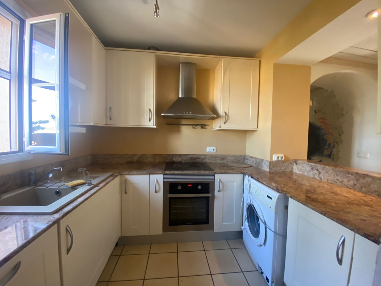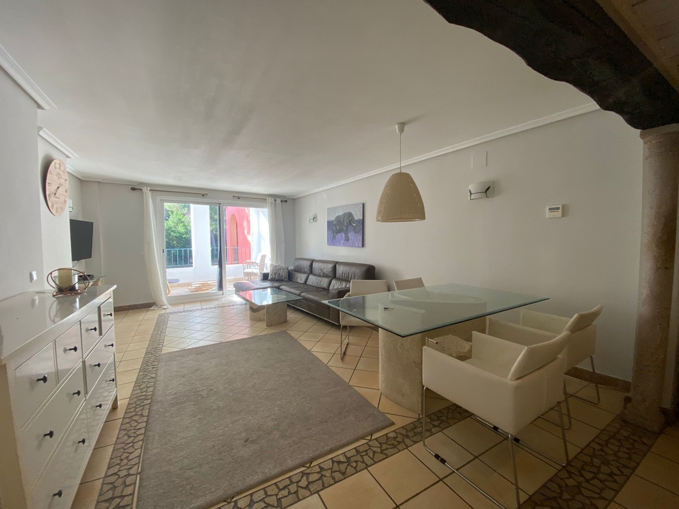 It is equipped with 2 spacious bedrooms, 2 bathrooms (one of them en suite), kitchen with serving hatch and views of the mountains and a spacious living area with access to the terrace.