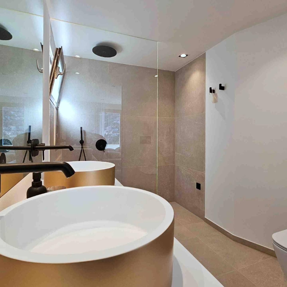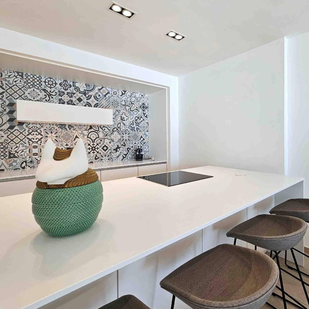 Fantastic and high-quality modernized apartment with fantastic sea views in 2nd sea line. The apartment is located in a small residential complex with only 26 units and a communal pool just 200 meters from the Gran Folies beach club. The residential complex has also recently been completely modernized.The apartment is located on the 2nd floor and there is an elevator to the pool and offers a spacious terrace, south orientation, a large living / dining area with open and fully equipped kitchen, 2 bedrooms, 2 bathrooms, fitted wardrobes, double glazed windows, underfloor heating, air conditioning hot / cold ...